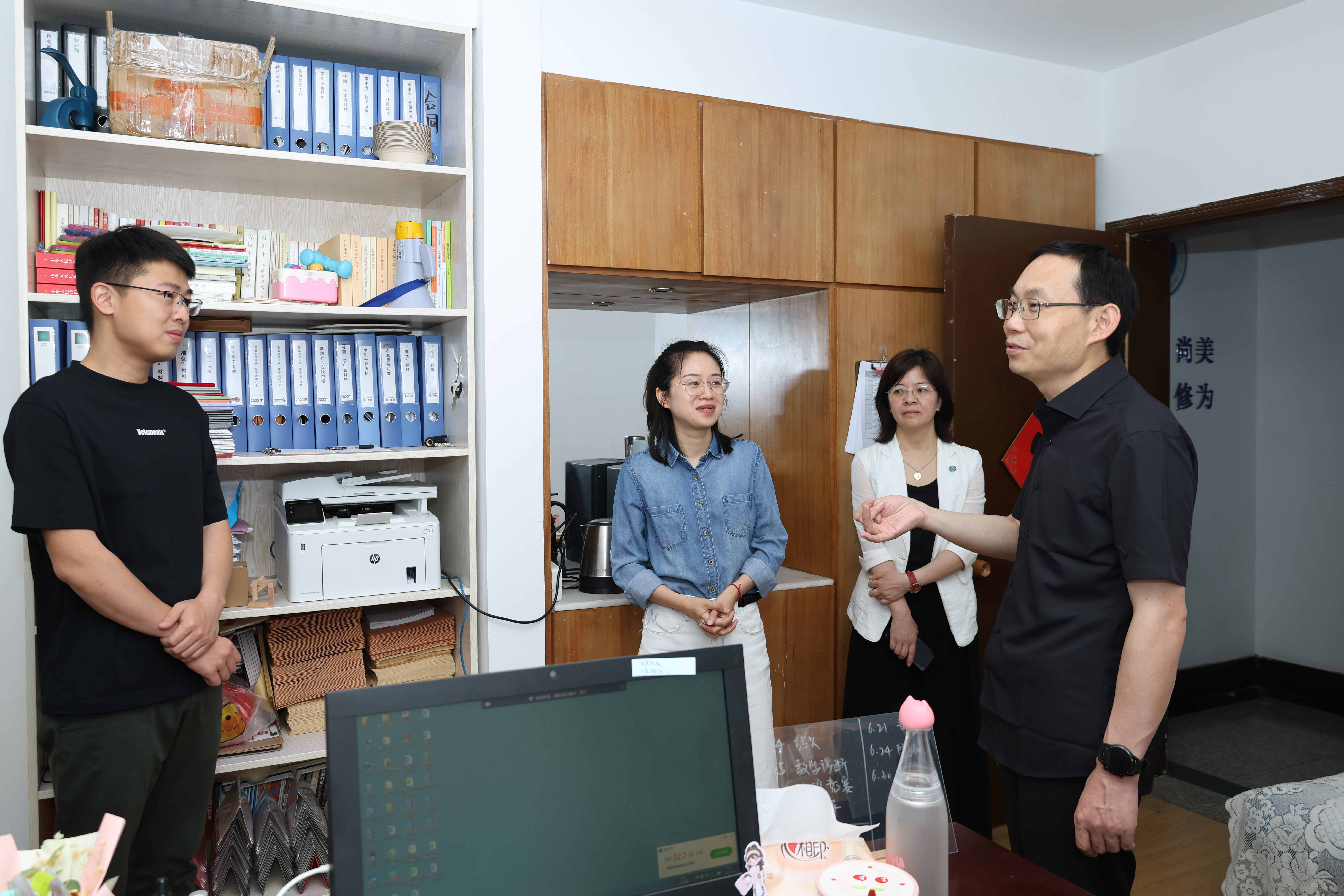 “你们辛苦了!”每到一处,施俊天都与教职工热情握手,询问大家工作情况,勉励大家继续奋勇争先、再创佳绩。他鼓励广大教职员工立足本职,履职尽责,扎实工作,以开拓进取的精神投入到学校工作中,踔厉奋发,笃行不怠,为进一步提升学校办学水平和人才培养质量做出新的贡献。