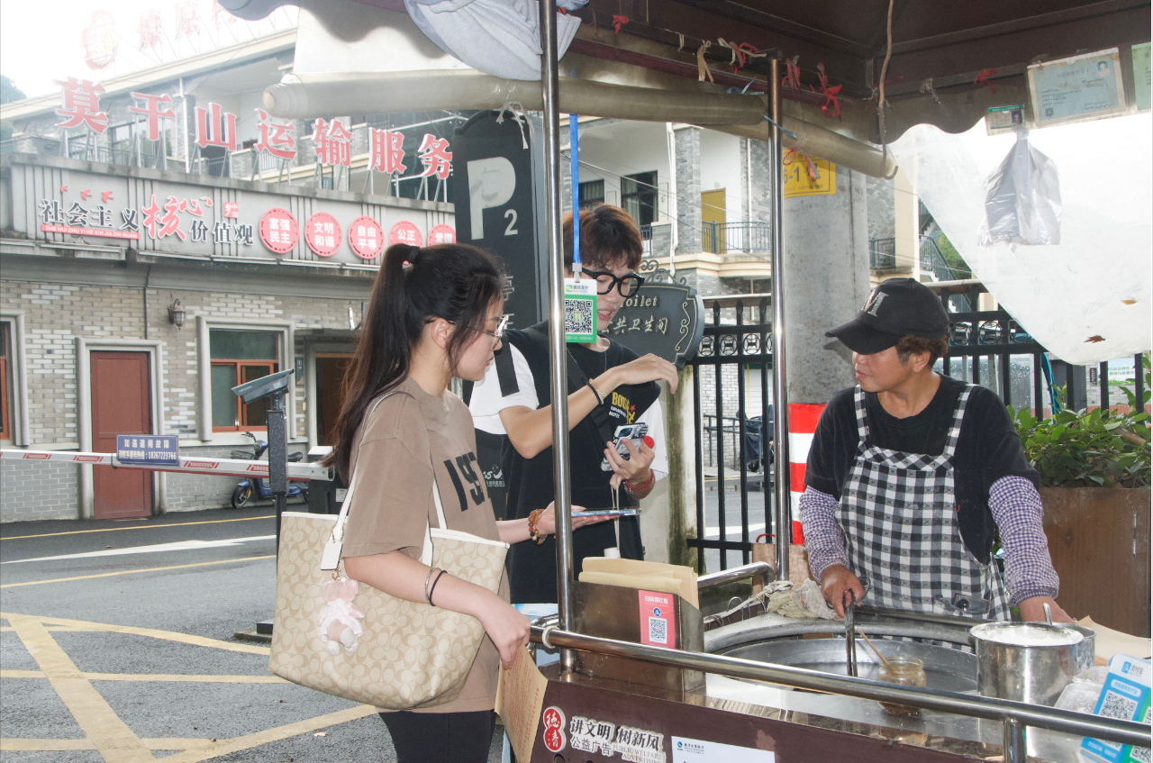 在调研过程中,团队成员采访了部分游客以及居住在景区旁的商家。一位对莫干山文化及其发展深有研究的游客认为:“老百姓的旅游,可能更多的还是需要去通过自媒体推广,鼓励大家拿起手机去拍、去发,因为我本身就是从朋友的朋友圈里面看到的。”团队成员由此认识到加强景点新媒体宣传的重要性,为后续工作的开展提供了新思路。