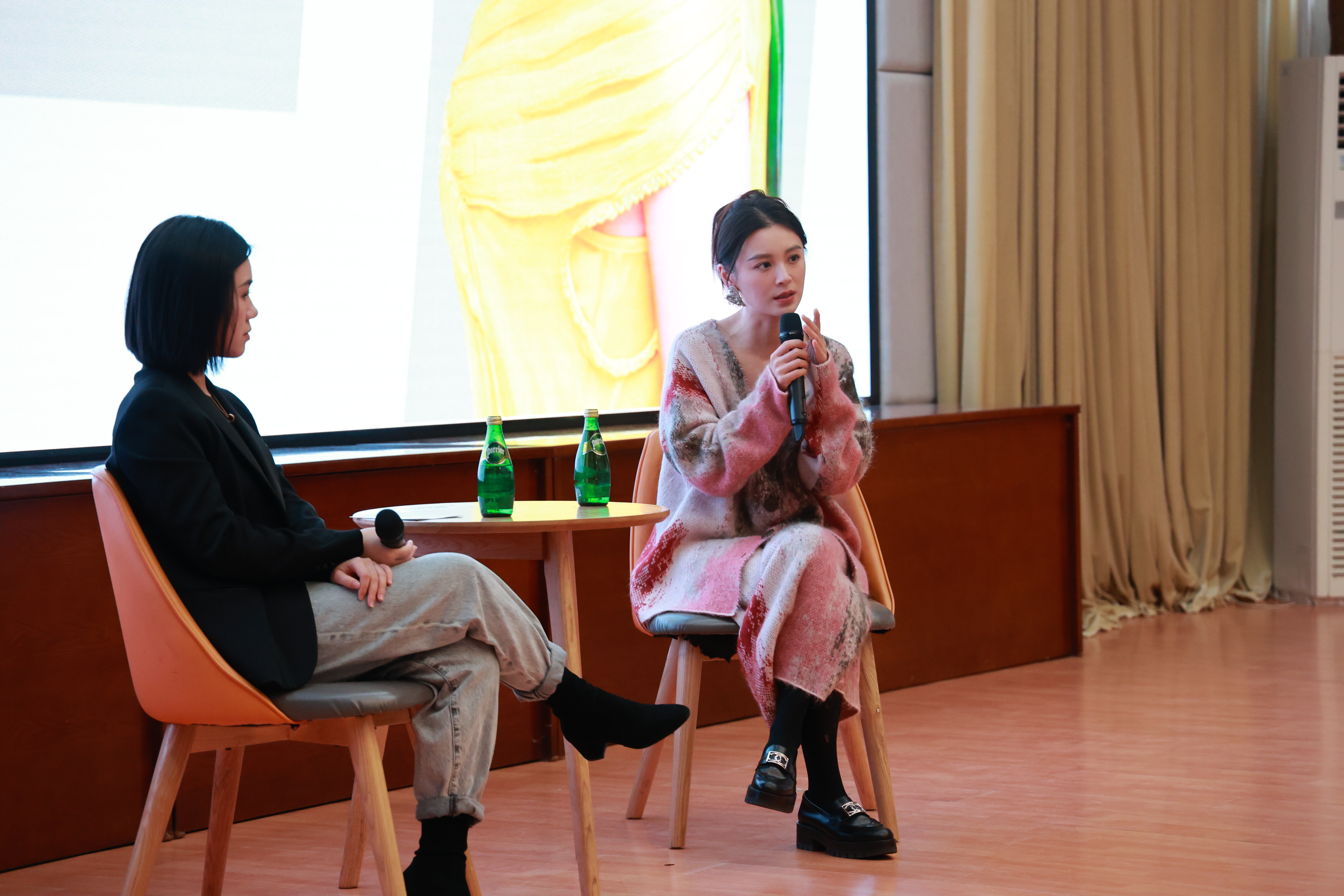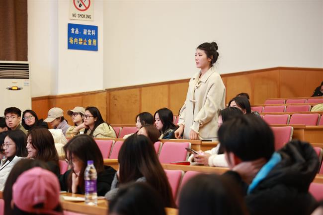 她表示,刚出道时,受到过许多质疑与批评,但她并没有受挫,反而勇敢地面对、接受质疑,不断钻研角色、磨练演技。她建议同学们少想多做,脚踏实地,有目的地去努力。