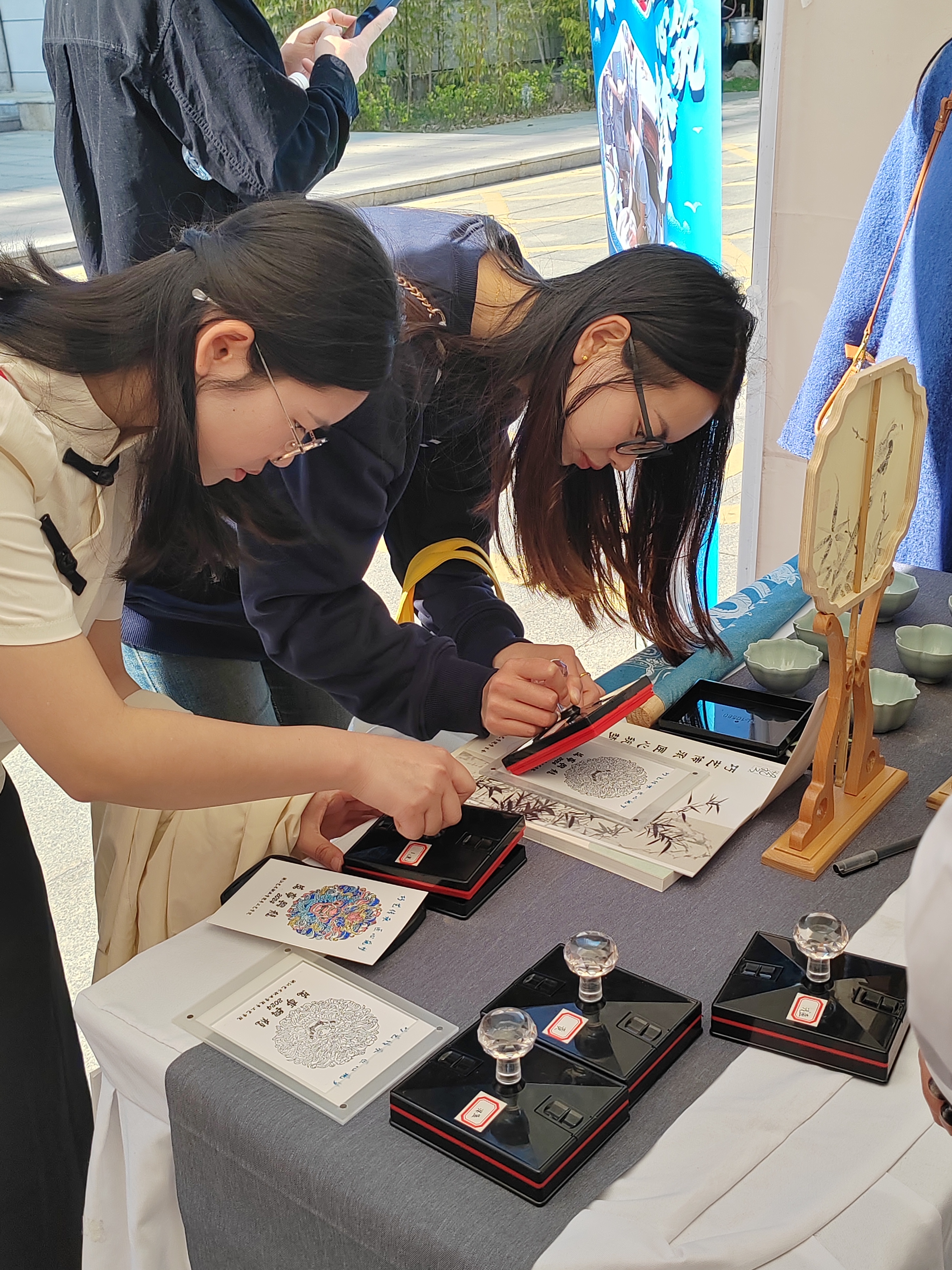在三天的交流展示活动中,手工艺学院项目现场人潮如织。通过青瓷、水印木刻、传统印染等非遗活态展示,受到了团中央和共青团浙江省委相关领导的充分肯定,并吸引了众多嘉宾和师生观摩、打卡。