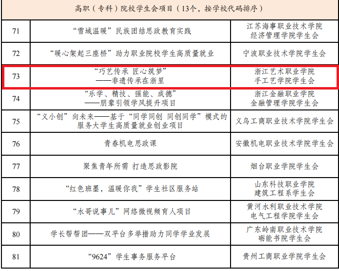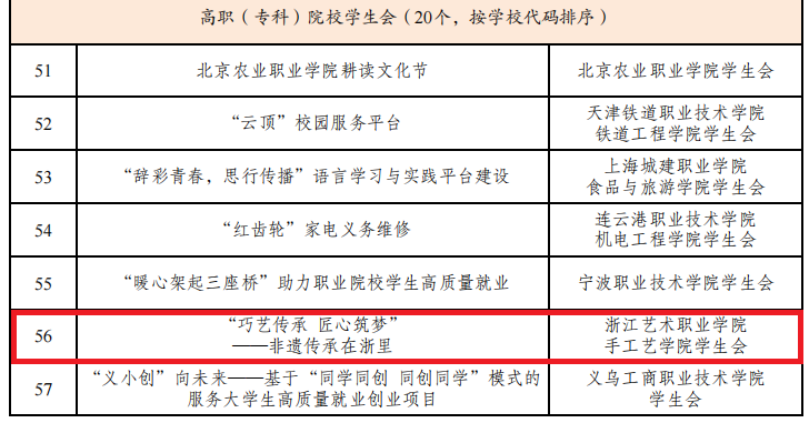 我校“巧艺传承,匠心筑梦——非遗传承在浙里”项目入选全国100个精品项目和“最受同学欢迎”项目