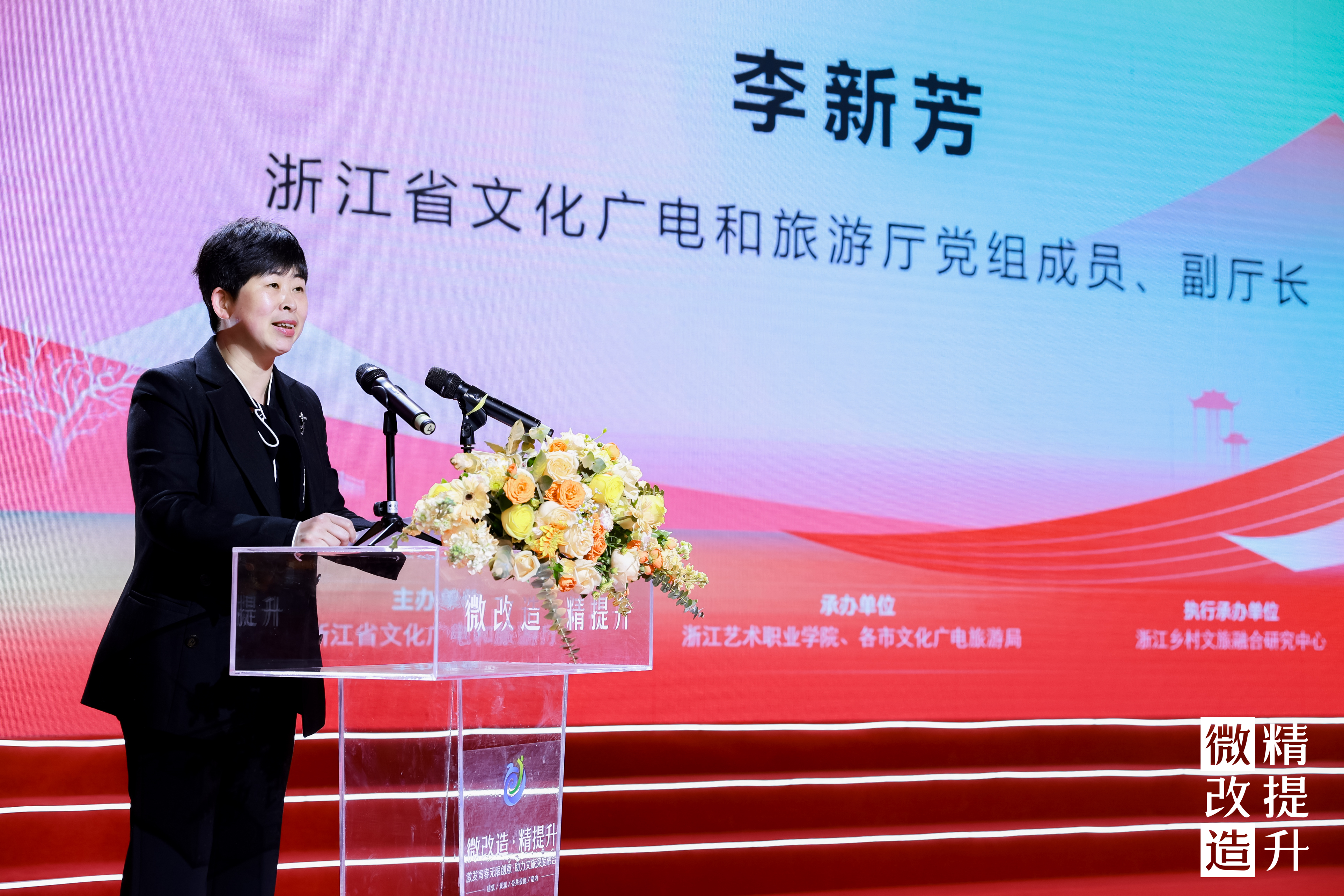 李新芳代表赛事主办方对获奖师生和团队表示祝贺,对参与和支持本次大赛的所有高校表示感谢。她指出,自2022年首次举办以来,全省大学生“微改造、精提升”创意策划大赛已成为高校助力我省旅游业高质量发展的代表性品牌。旅游业“ 微改造、精提升",既是当下提升游客体验的必要之举,也是旅游产业长远发展的重要前提。通过举办全省大学生助力旅游业“ 微改造、精提升“ 创意策划大赛,有益于加强校地合作,吸纳最具活力的大学生群体参与其中,助力各地打造微改精提标志性成果,为旅游业发展开新知发新声。她表示,期待大赛成果能更多地呈现于全省旅游目的地,也热忱欢迎更多的高校和师生积极参与全省微改精提工作,以旅游业为媒介,让大学生朋友们在与城乡活力、美好生活融为一体、双向奔赴中,找到归属、获得舞台、创造精彩,为“诗和远方”贡献绵薄之力。