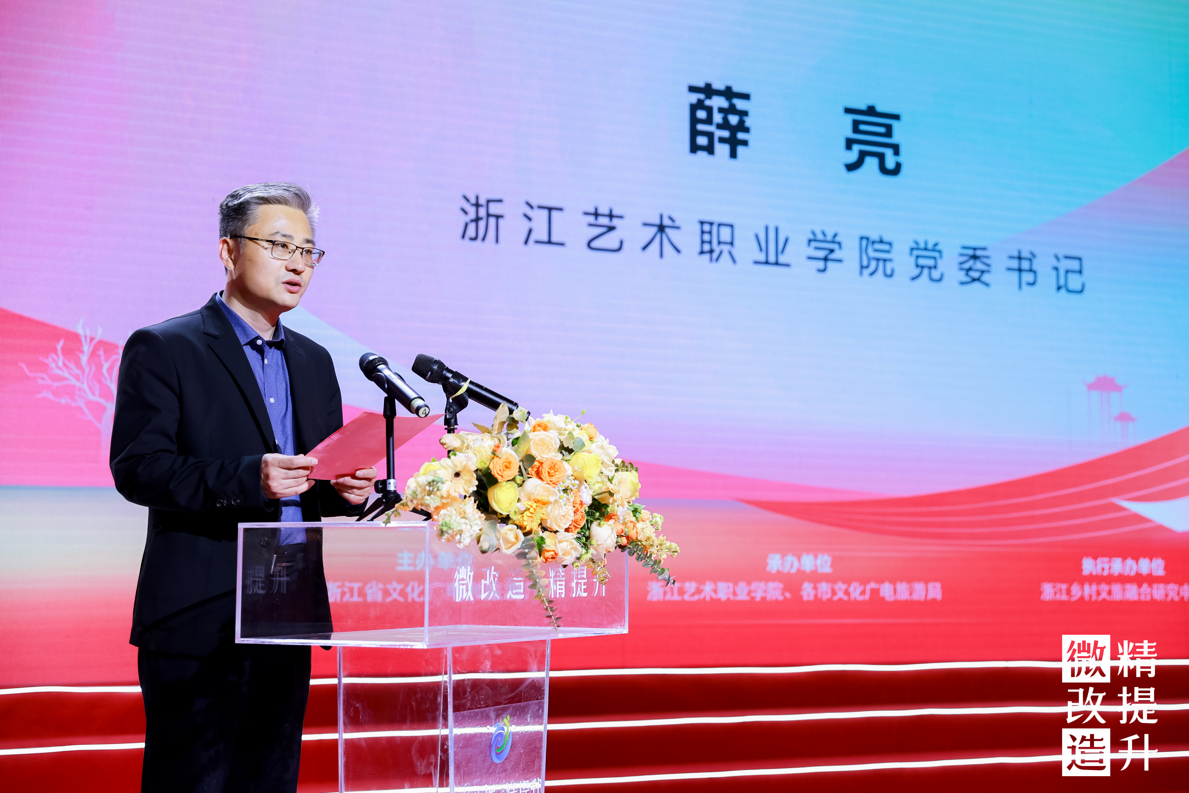 薛亮代表赛事承办方致辞。他表示,学校紧紧抓住承办全省大学生助力旅游业“微改造、精提升”创意策划大赛的重要契机,积极发挥学校办学历史久、专业门类多、人才队伍强的资源优势和全省各大高校大学生的创业创新热情,精心组织承办大赛,践行乡村旅游文化新发展理念,坚持走好文旅融合发展新路径。努力实现以赛事整合资源、以项目任务驱动教学、以服务提升专业,切实担负起文旅赋能、助力共富的责任担当。希望更多有创意、更新潮的年轻人成为文旅融合创新的主体,助力“微改造、精提升”改出浙江全域旅游发展共建新合力,改出共富新动能,改出共享新品质,全面扮靓“诗画江南、活力浙江”。