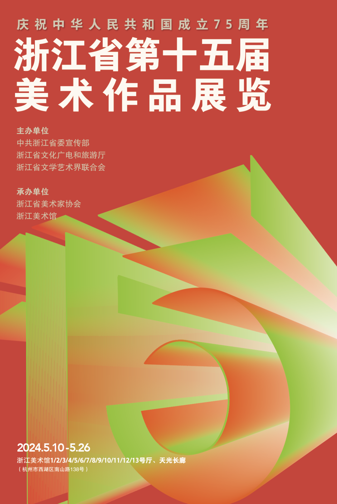 5月10日至26日,浙江省第十五届美术作品展览在浙江美术馆展出。展览由浙江省委宣传部、浙江省文化广电和旅游厅、浙江省文学艺术界联合会共同主办,浙江省美术家协会、浙江美术馆承办。