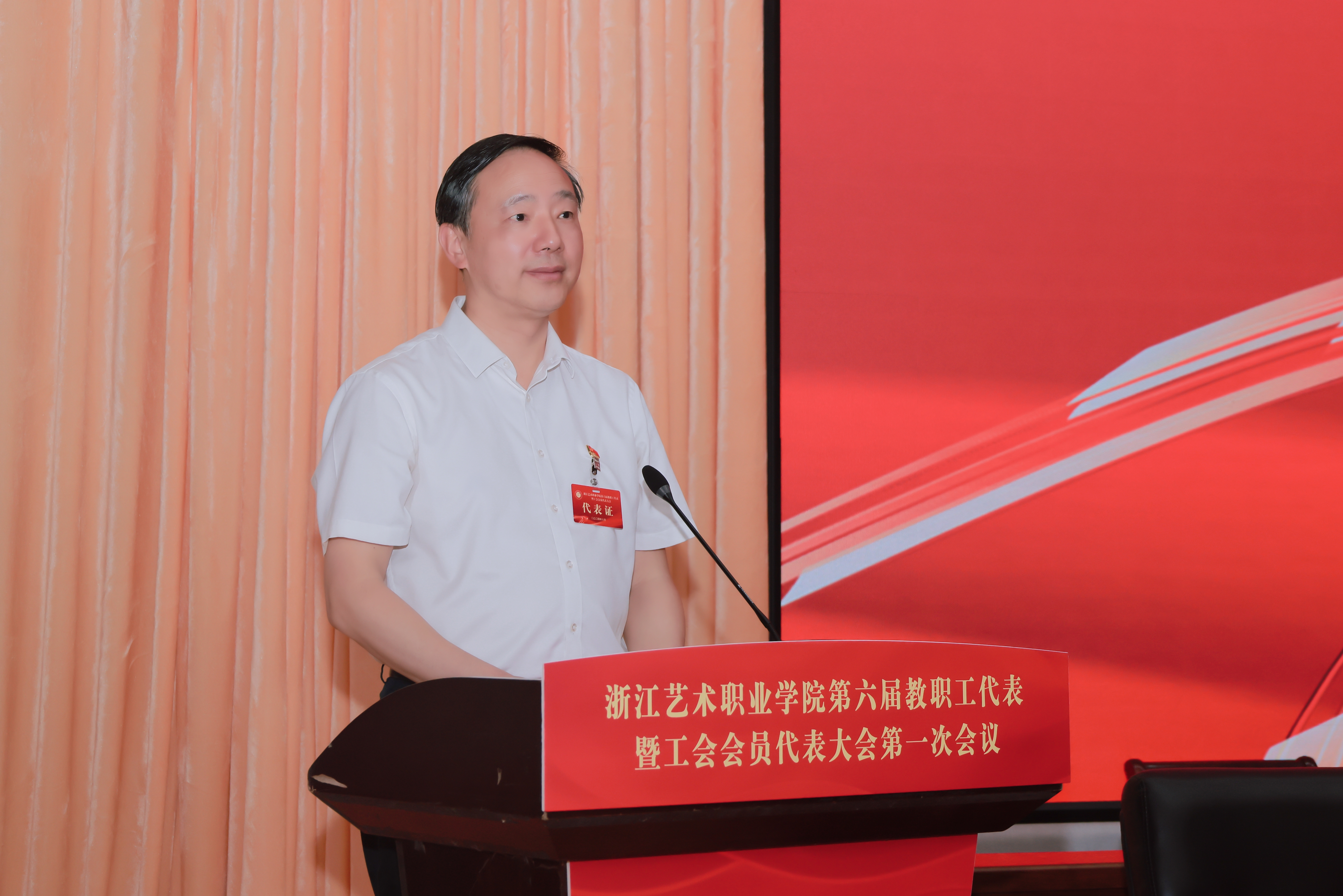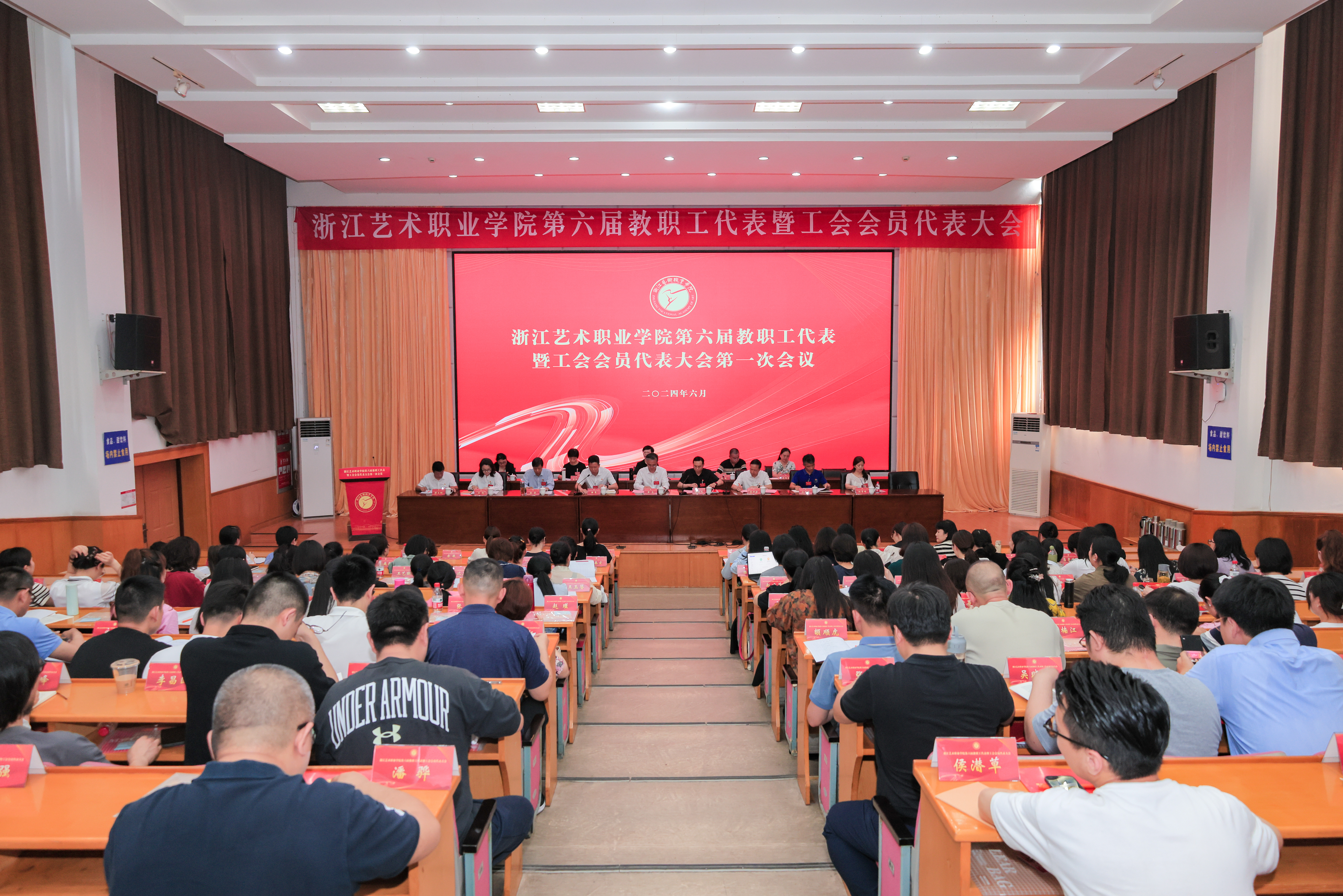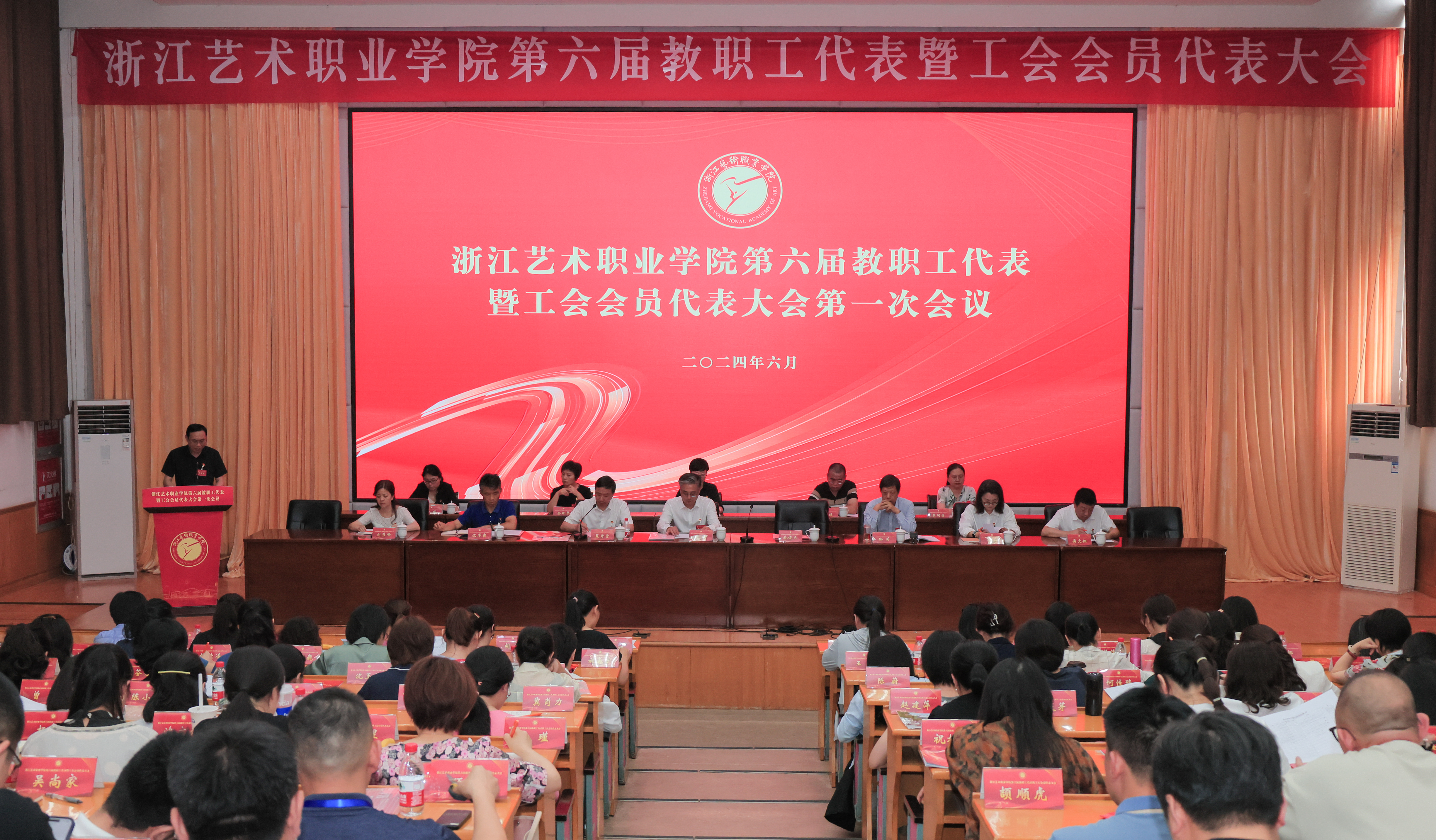 6月22日,浙江艺术职业学院第六届教职工代表暨工会会员代表大会(以下简称“双代会”)在图信中心报告厅举行。校党委领导班子成员,校“双代会”正式代表、特邀代表、列席代表等170余人参加会议。