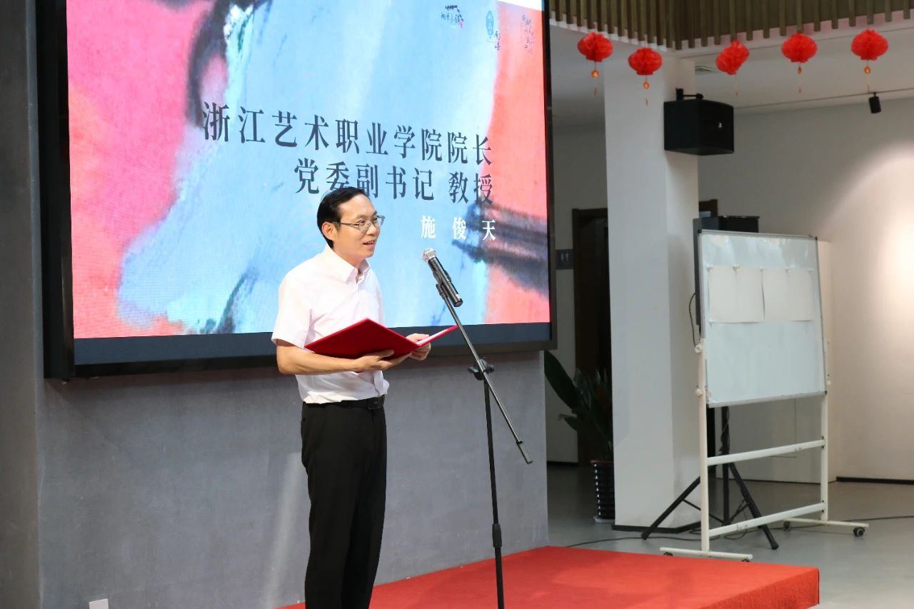 开幕式上,浙江艺术职业学院院长、党委副书记、教授施俊天,善琏镇党委副书记姚豪杰,北大培文汉字艺术研究中心主任、汉字艺术家濮列平,美术报编委、浙江科普艺术协会秘书长韩晋宇分别致辞。