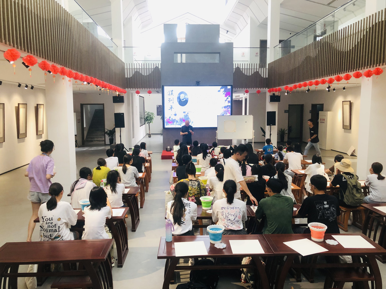 结业式下午,王晓明教授引领三地师生共绘百米长卷,展现汉字艺术水墨魅力。