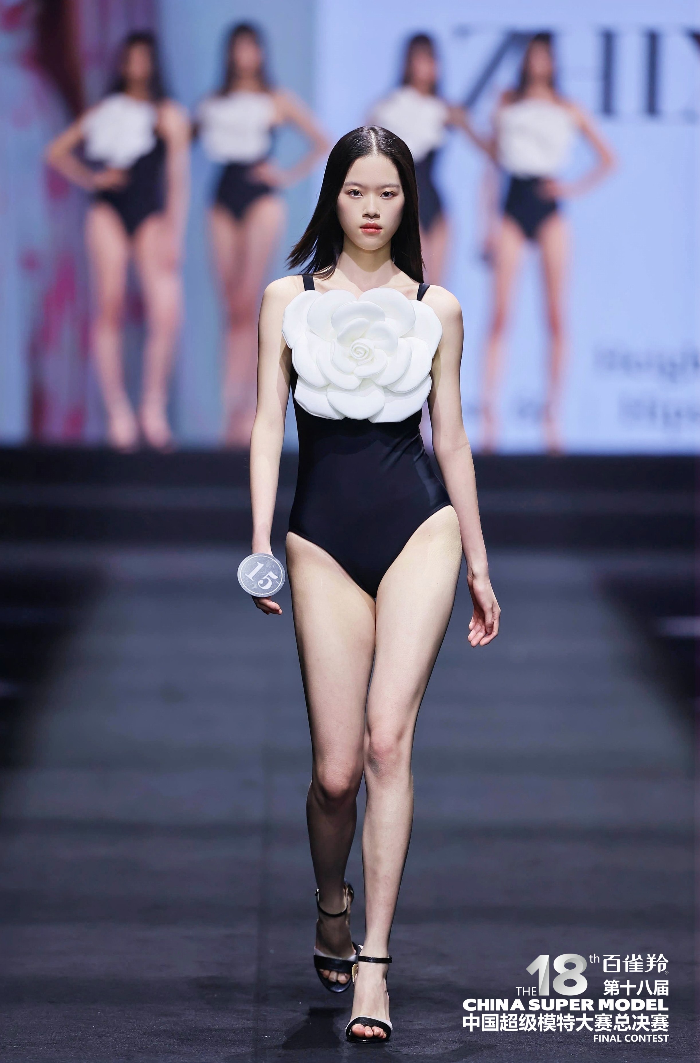决赛现场,经过泳装展示、高级时装展示、高定礼服展示等环节,考察选手自身条件、对时装理解力及T台基本功。