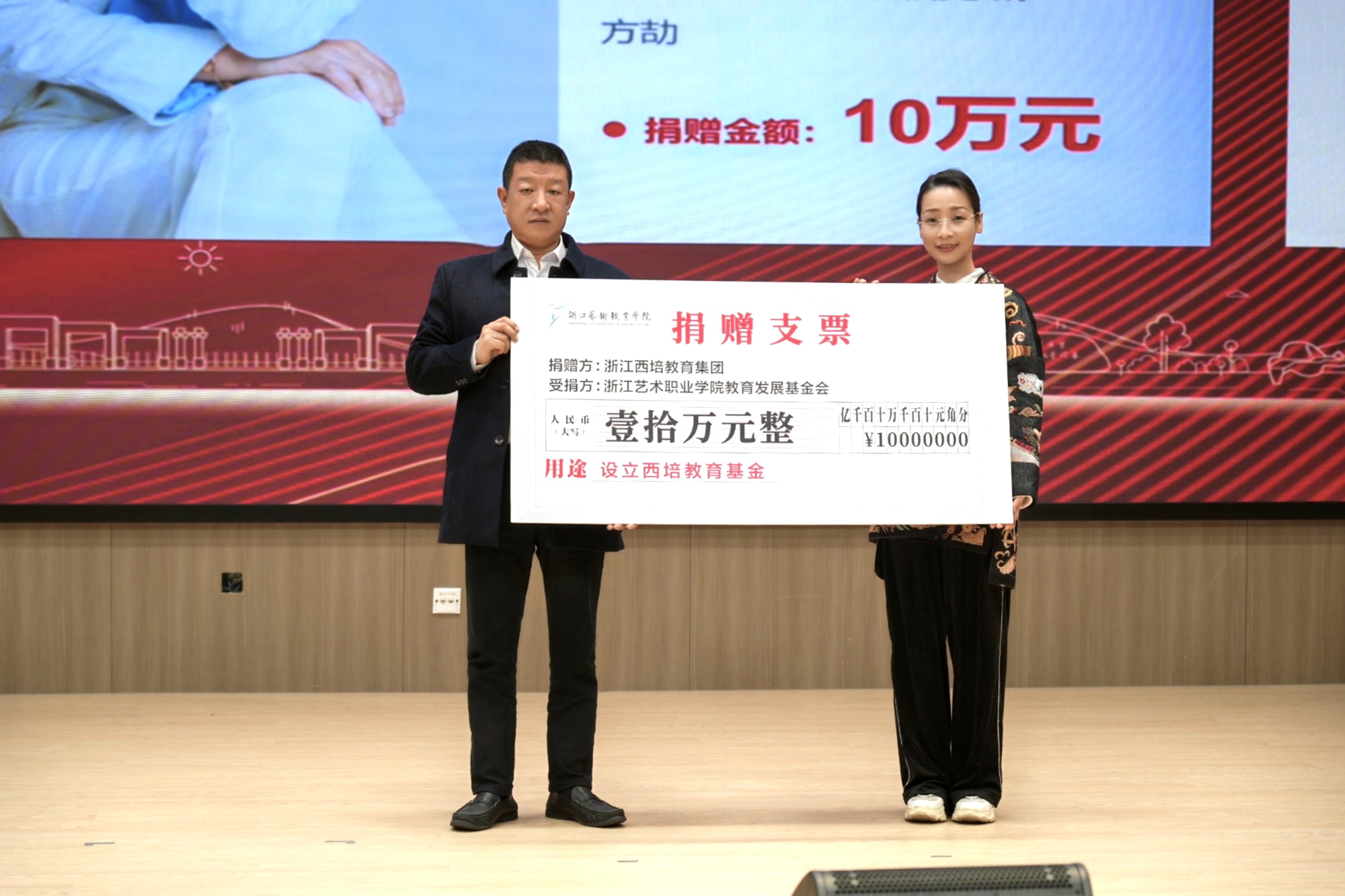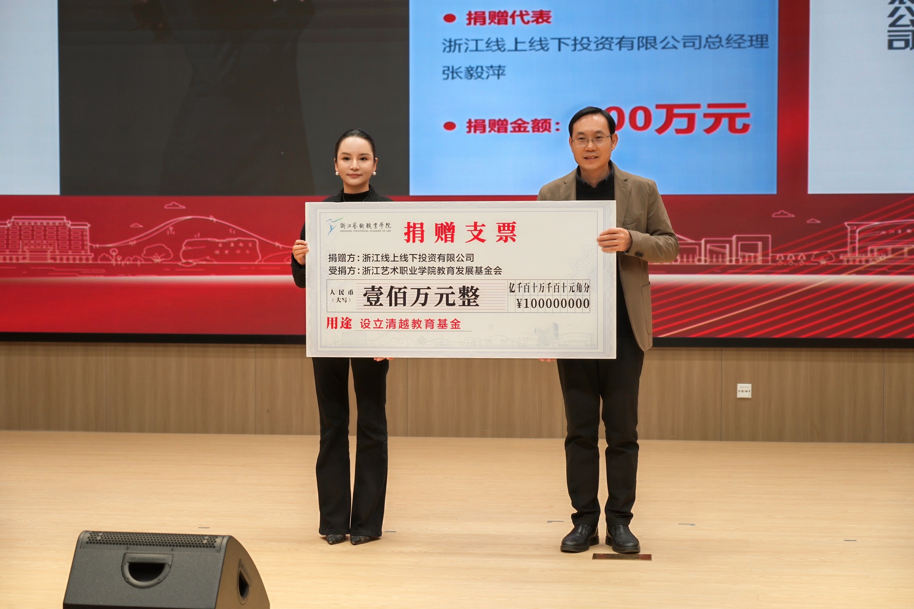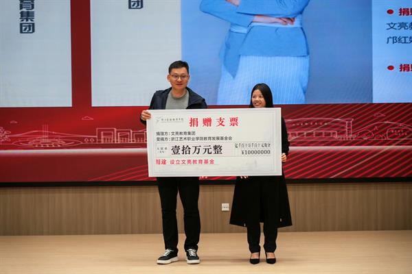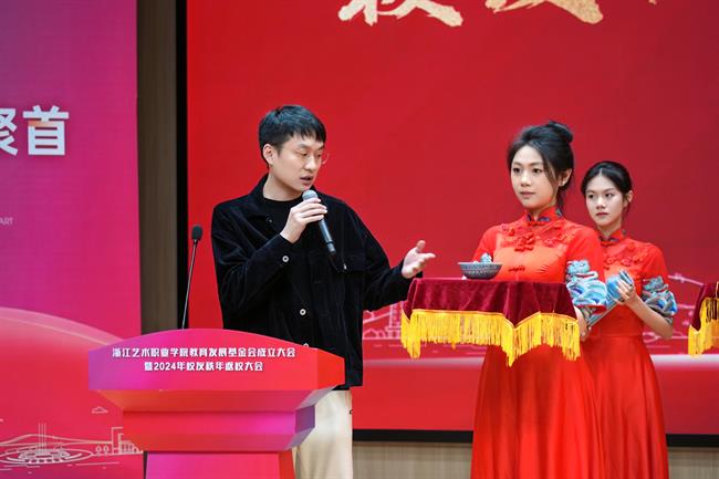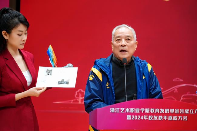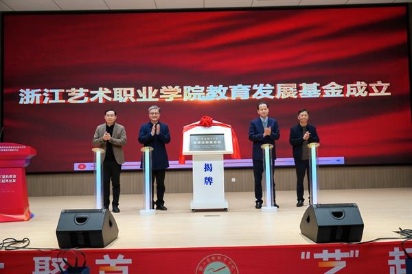 活动现场,嘉宾、领导为浙江艺术职业学院教育发展基金会正式揭牌并举行公益捐赠仪式,多家合作企业和热心校友为支持学校的专业建设、人才培养、产教融合等贡献力量。