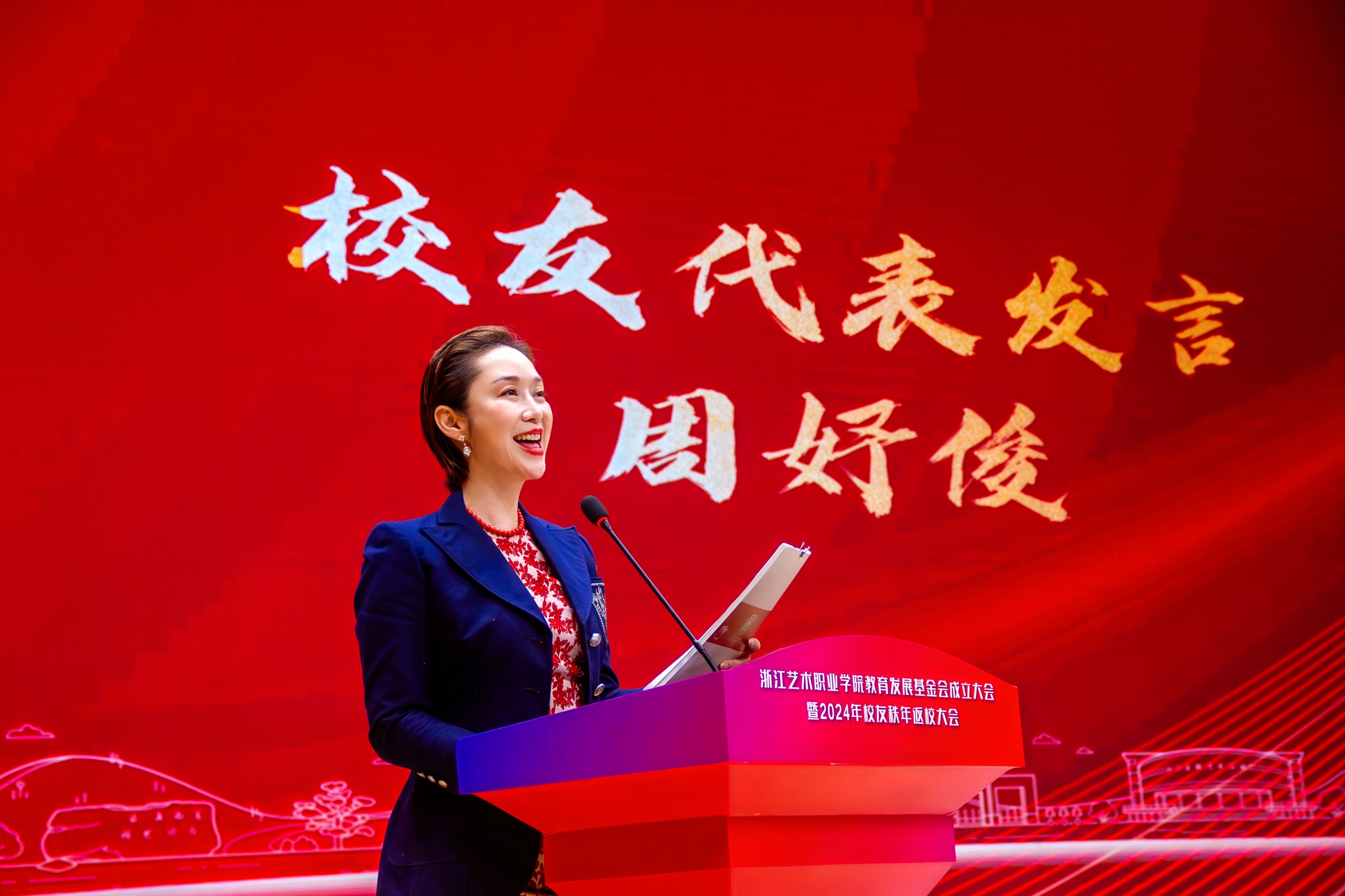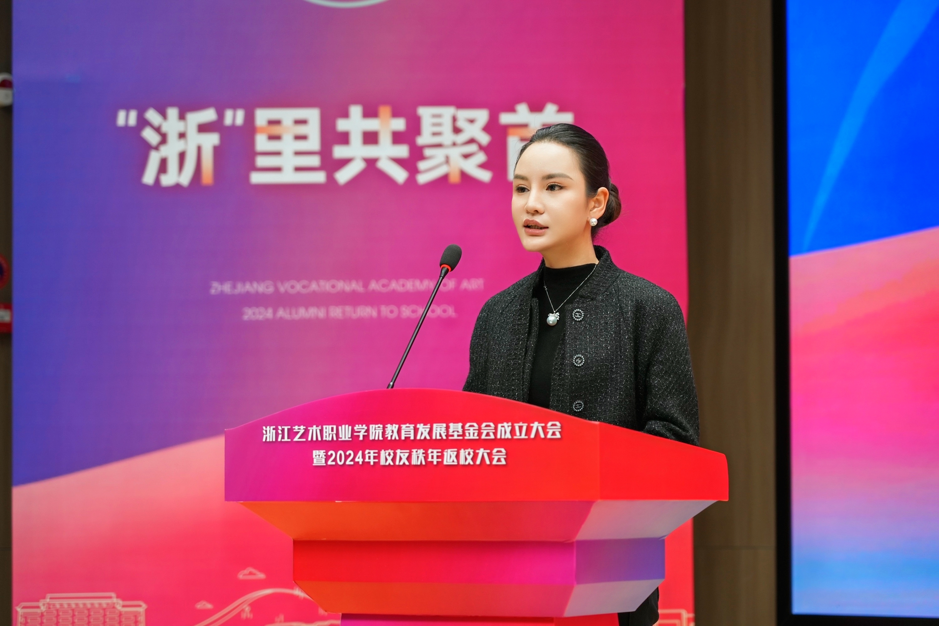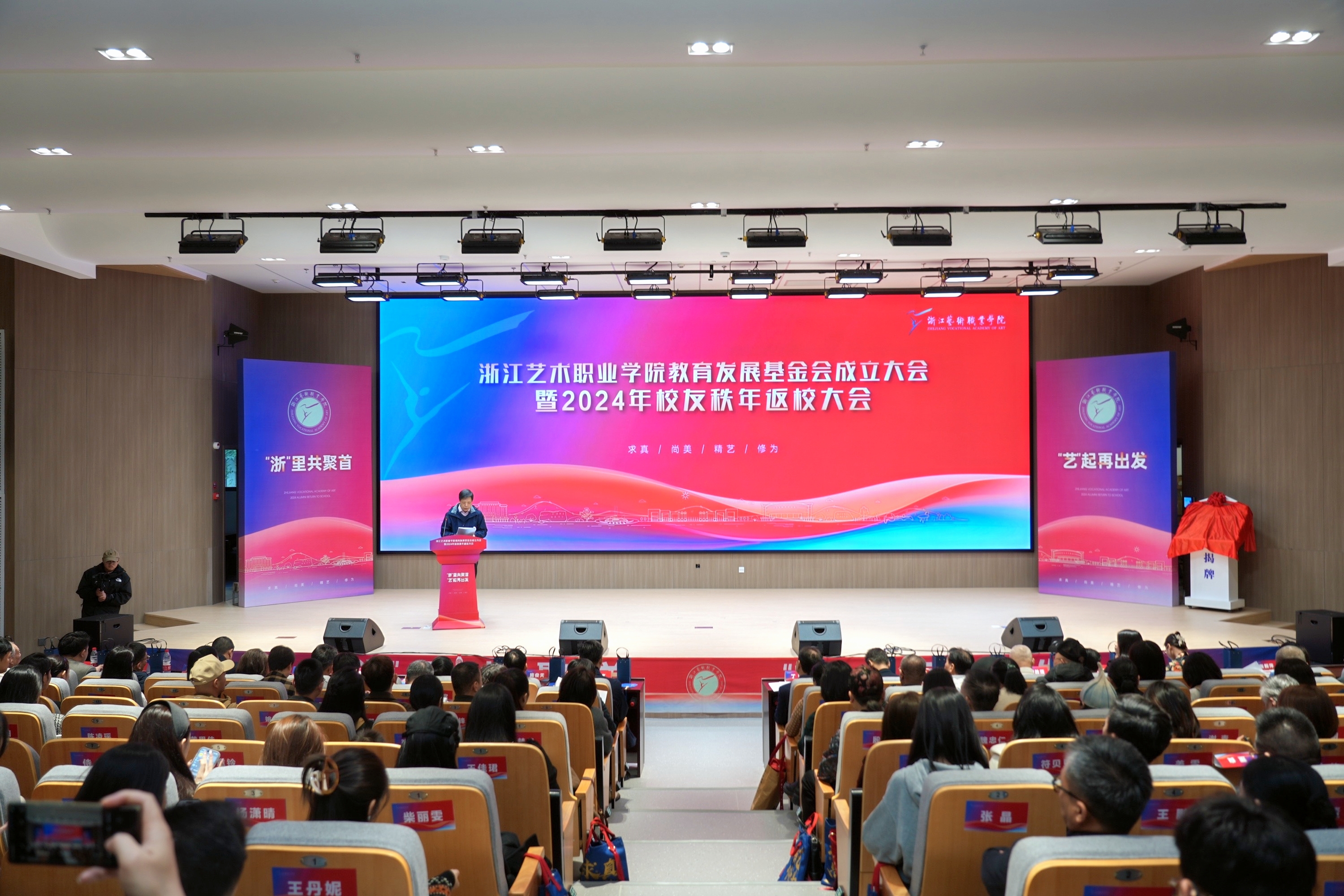 初冬逢暖日,盛会聚群贤。浙江艺术职业学院教育发展基金会成立大会暨2024年校友秩年返校大会在新教学综合楼大报告厅举行。校党委书记薛亮、校长施俊天,浙江省文化广电和旅游厅市场管理处(行政审批处)一级调研员丁屹,浙江省文化广电和旅游厅社会组织党委委员、基金会党总支书记刘建宽出席大会,校党委班子成员、各界企业来宾、校友代表、师生代表共聚一堂,共同见证。活动由副校长徐芳主持。