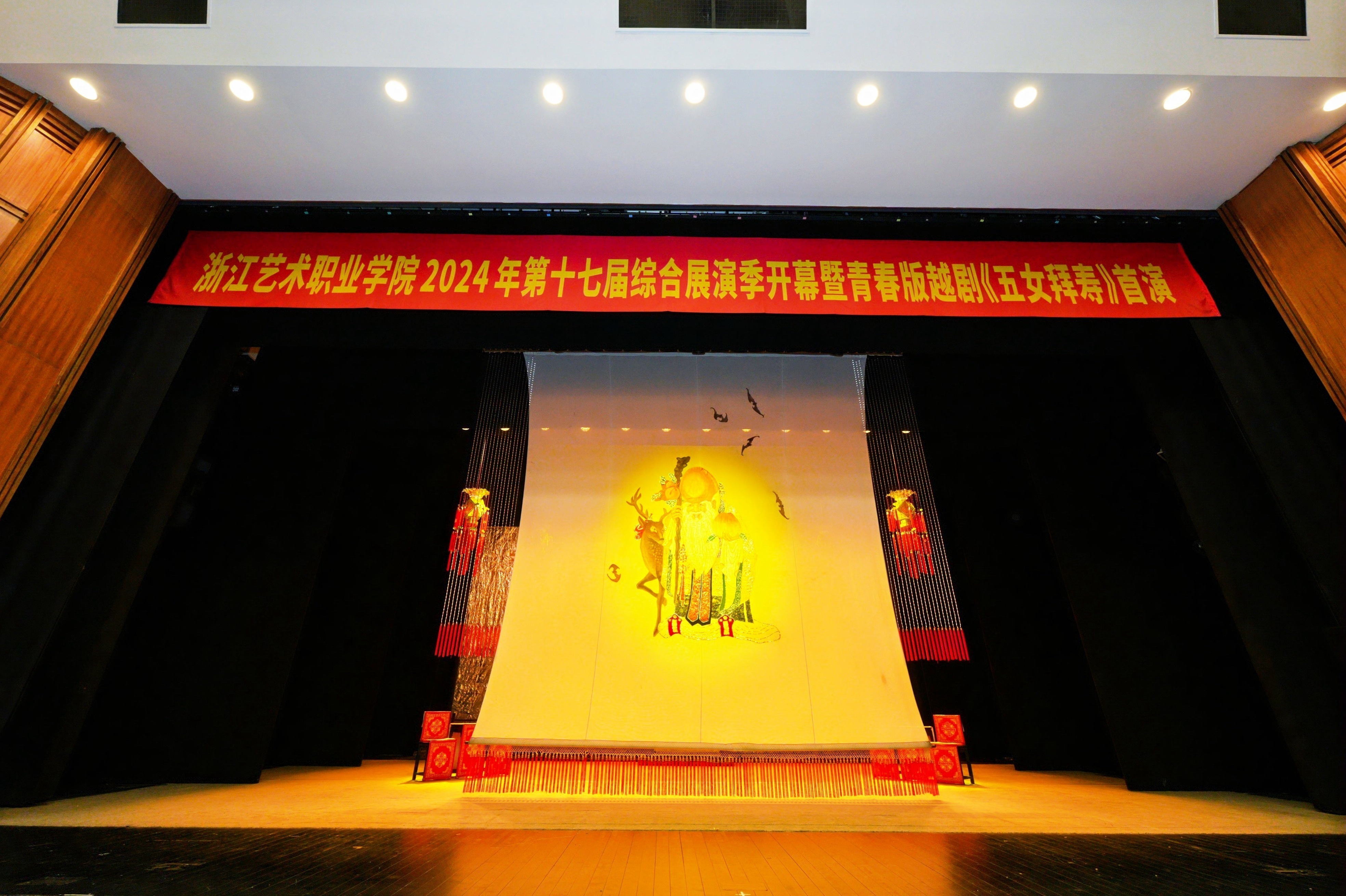 11月8日晚,浙江实验艺术剧场内座无虚席,掌声雷动,浙江艺术职业学院第17届综合展演季正式拉开帷幕。作为综展季的首场演出,由浙江艺术职业学院与浙江小百花越剧院联合打造的2019级戏曲表演(越剧)小百花班(简称“19小百花班”)毕业大戏青春版越剧《五女拜寿》闪亮登场,这场演出不仅是一场艺术的盛宴,更是对越剧艺术传承与创新的一次深情致敬。