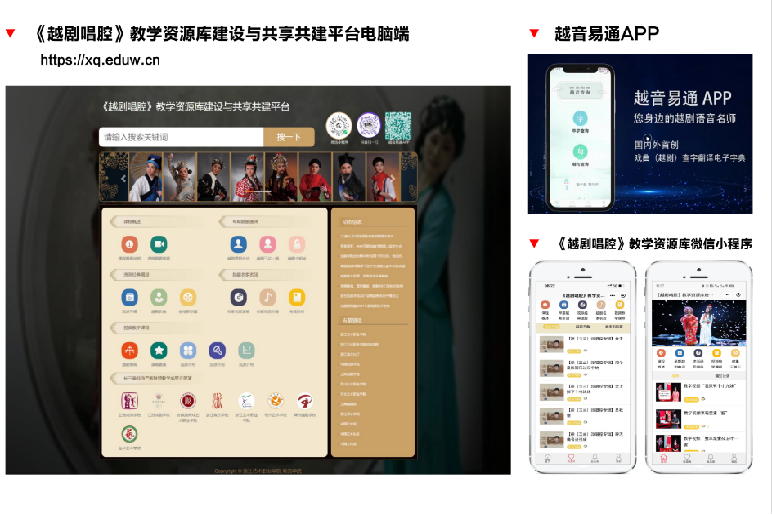 ▲首创越剧发音一键搜索的电子字典“越音易通”APP,《越剧唱腔》教学资源库建设与共享共建平台入选文化和旅游部文化艺术职业教育“提质培优行动计划”优秀项目
