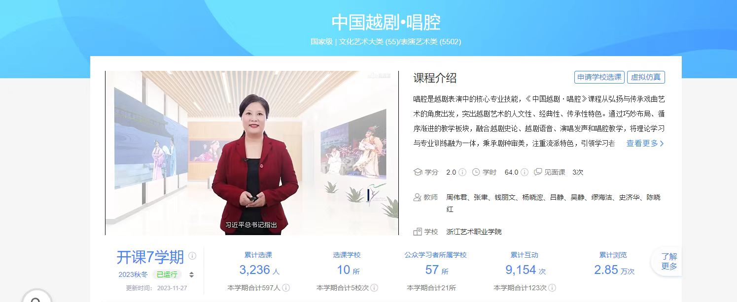 ▲《中国越剧·唱腔》入选职业教育国家级在线精品课程