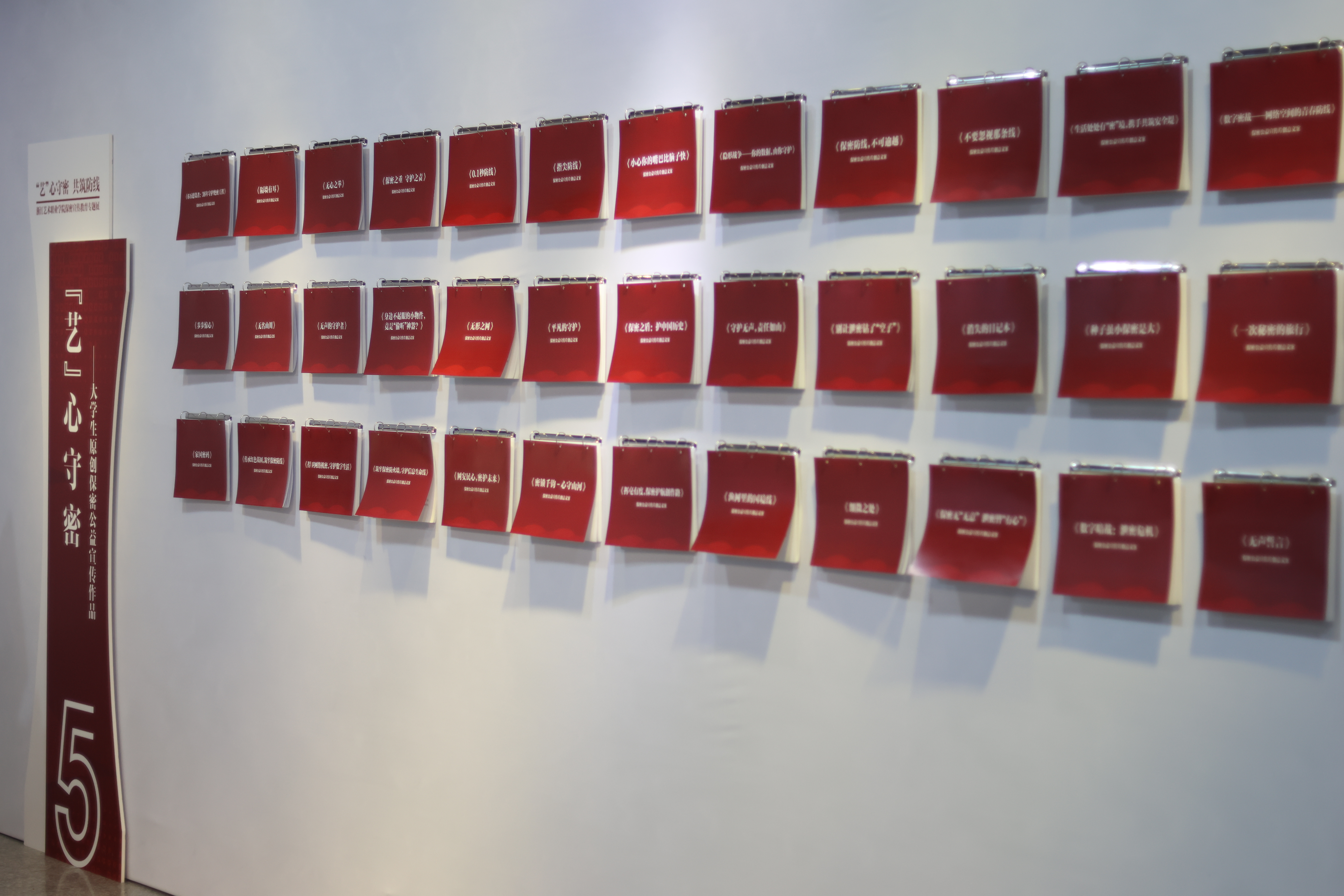 展览分为“学法护密”“警钟长鸣”“防患未然”“视听密语”“‘艺’心守密”“校园筑密”六大板块,展出学生原创保密公益作品共132件,既有构思巧妙、内涵深远的宣传片文案,又有新颖独特、发人深省的宣传海报,还有慧心巧思、技艺娴熟的手工艺作品,展示了我校保密教育创作的丰硕成果。