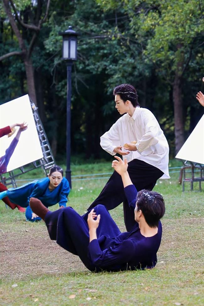 在本次《行舟》的创作与执行中,我校组建跨院系、多维度核心团队,实现教学资源与艺术实践的深度融合。舞蹈学院编导教师李毅源担任总导演,凭借深厚编创功底与对环境舞蹈的独到理解,统筹整体艺术构思,巧妙将跨湖桥文明的历史厚重感与现代舞蹈语汇相融共生;青年教师吉日塔、舞蹈学院优秀校友徐妍、汪齐担任执行导演,确保多场域表演连贯流畅、一气呵成;青年教师谭雨旋、吴迪和18位专业学生、众多校友担任主要演员,以扎实专业能力和丰富实践经验,全身心投入表演;戏曲学院江科元、周莉、杨茜,设计学院陈雪瑜等青年教师加入创作组,为作品注入多元艺术表达;23级舞蹈编导专业14名学生担任7个演出点位的导演助理及志愿者,确保演出顺利完成。这支“舞蹈牵头、多院协同、师生联动”的团队,成为本次舞蹈季高质量呈现的核心支撑。