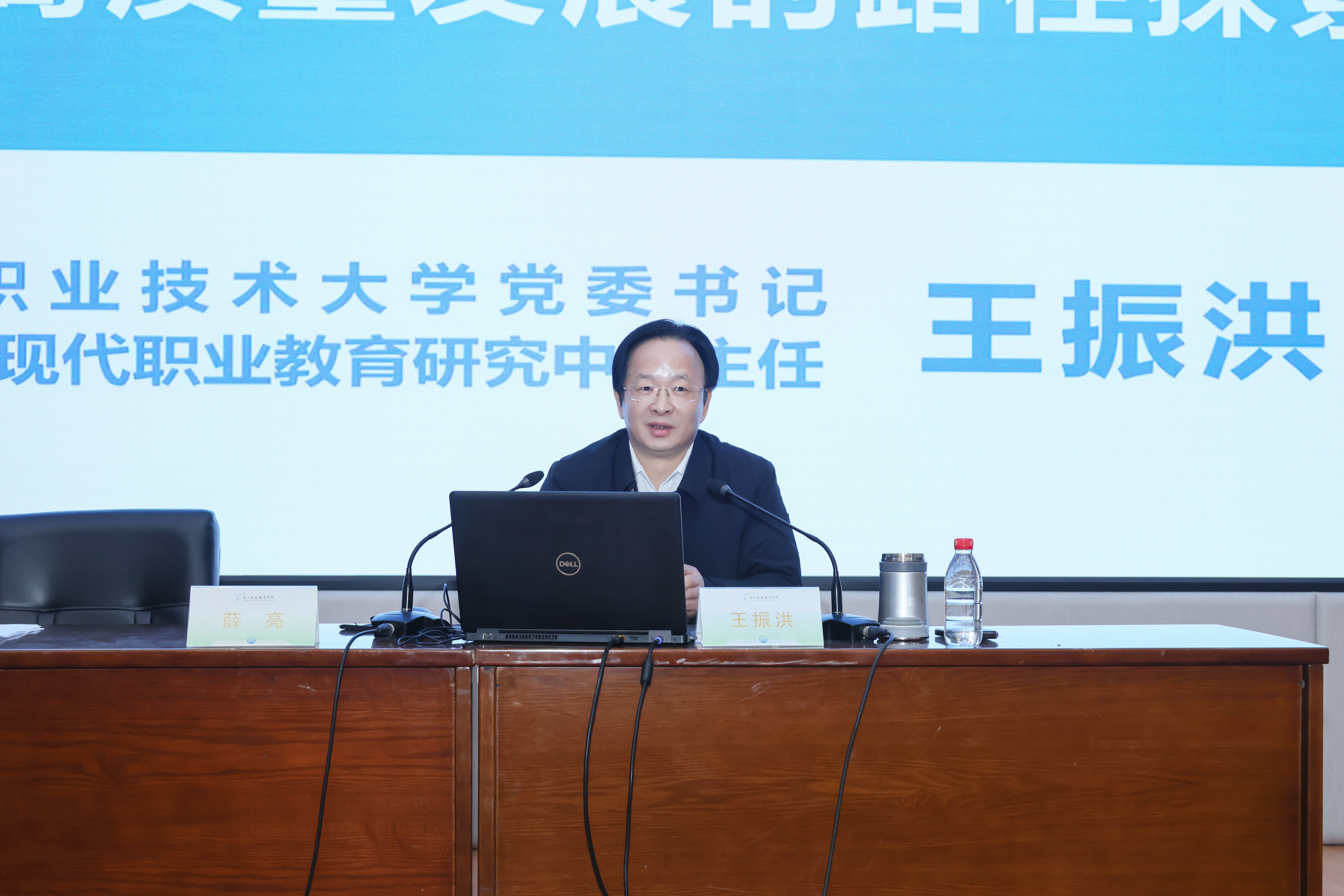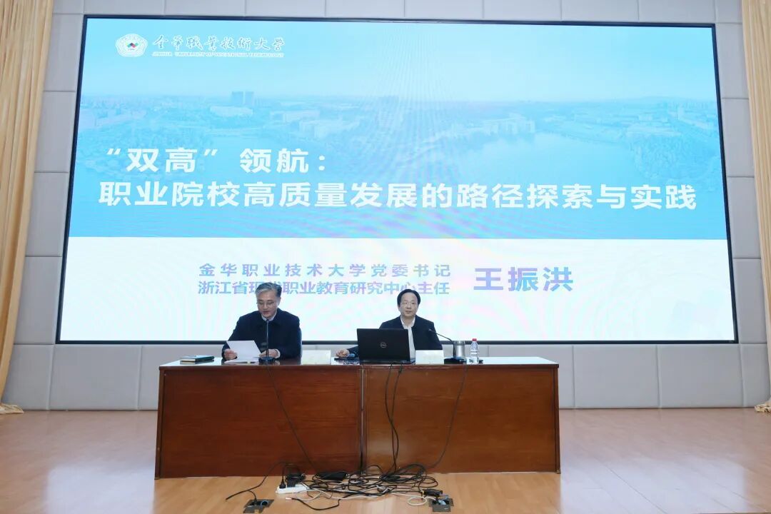 王振洪应邀作题为《“双高”领航:职业院校高质量发展的路径探索与实践》的专题报告,分享了金华职业技术大学在首轮“双高”建设中的探索与实践,为我校高质量发展提供了宝贵经验和前沿思考。