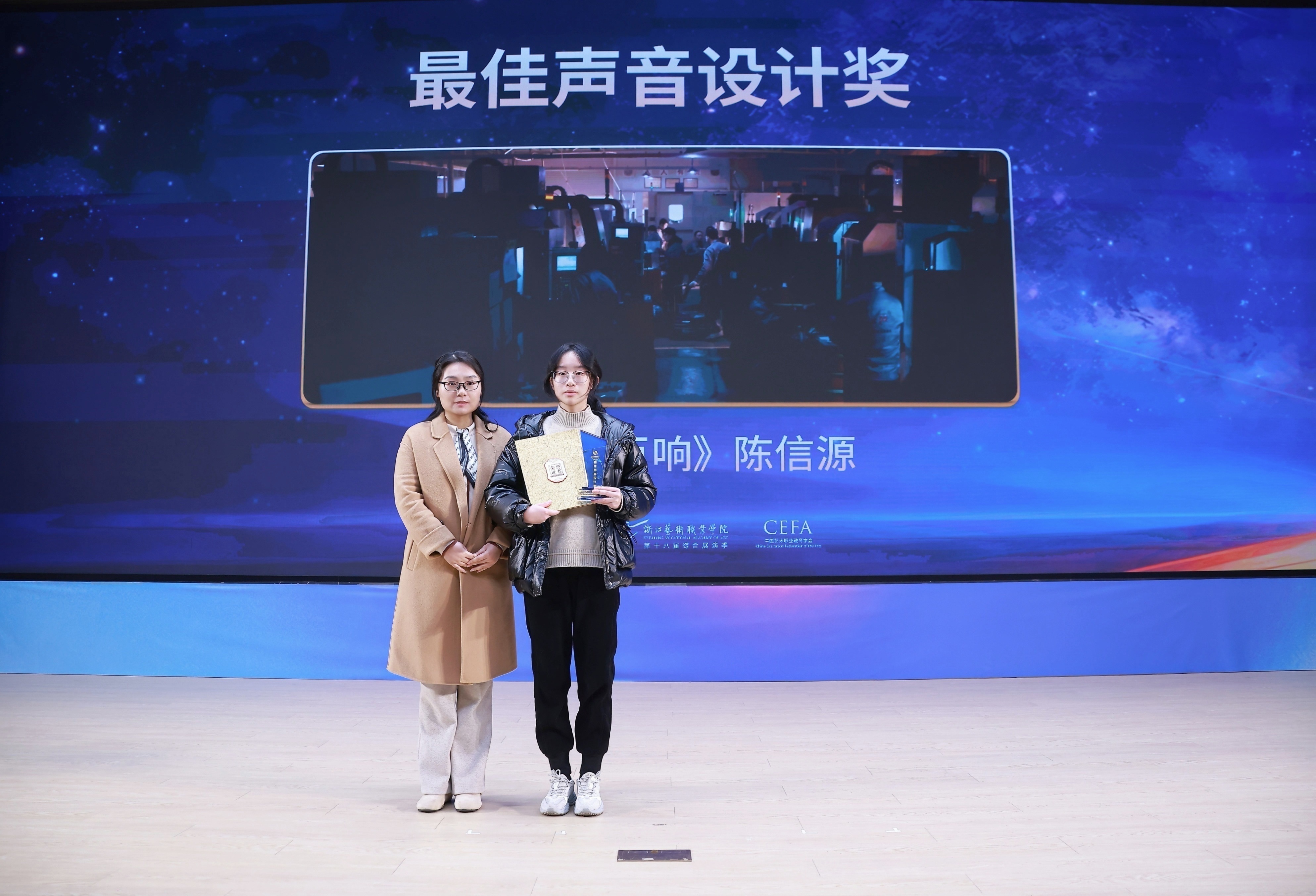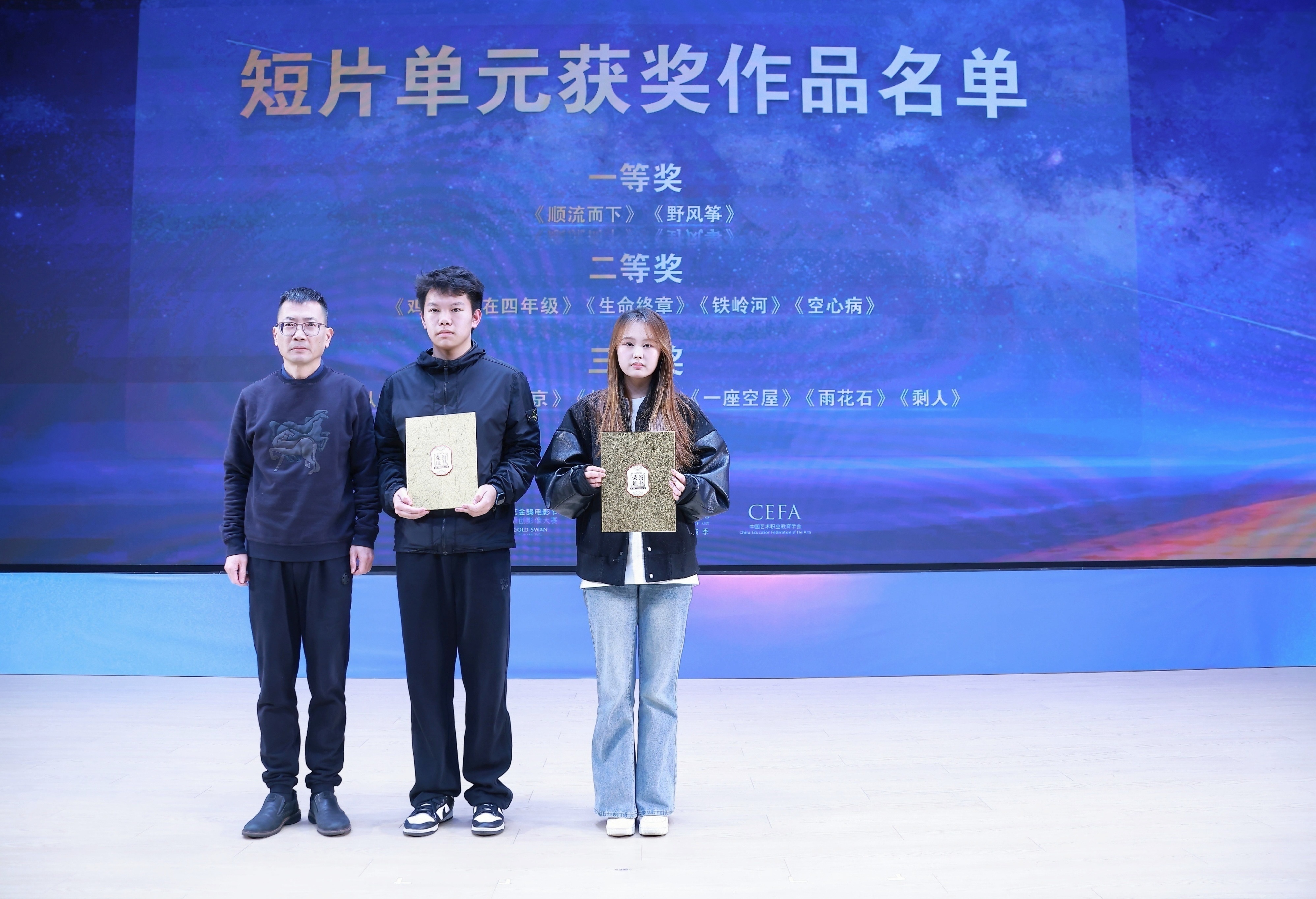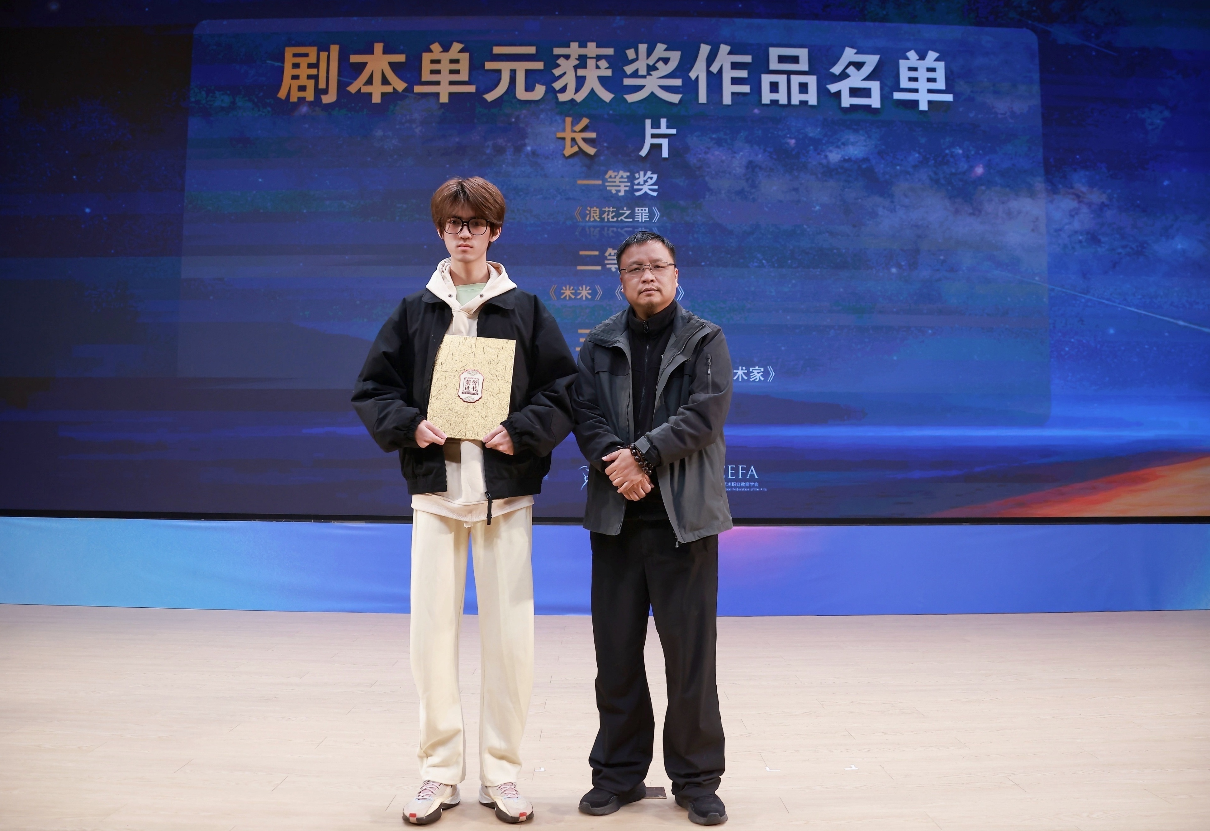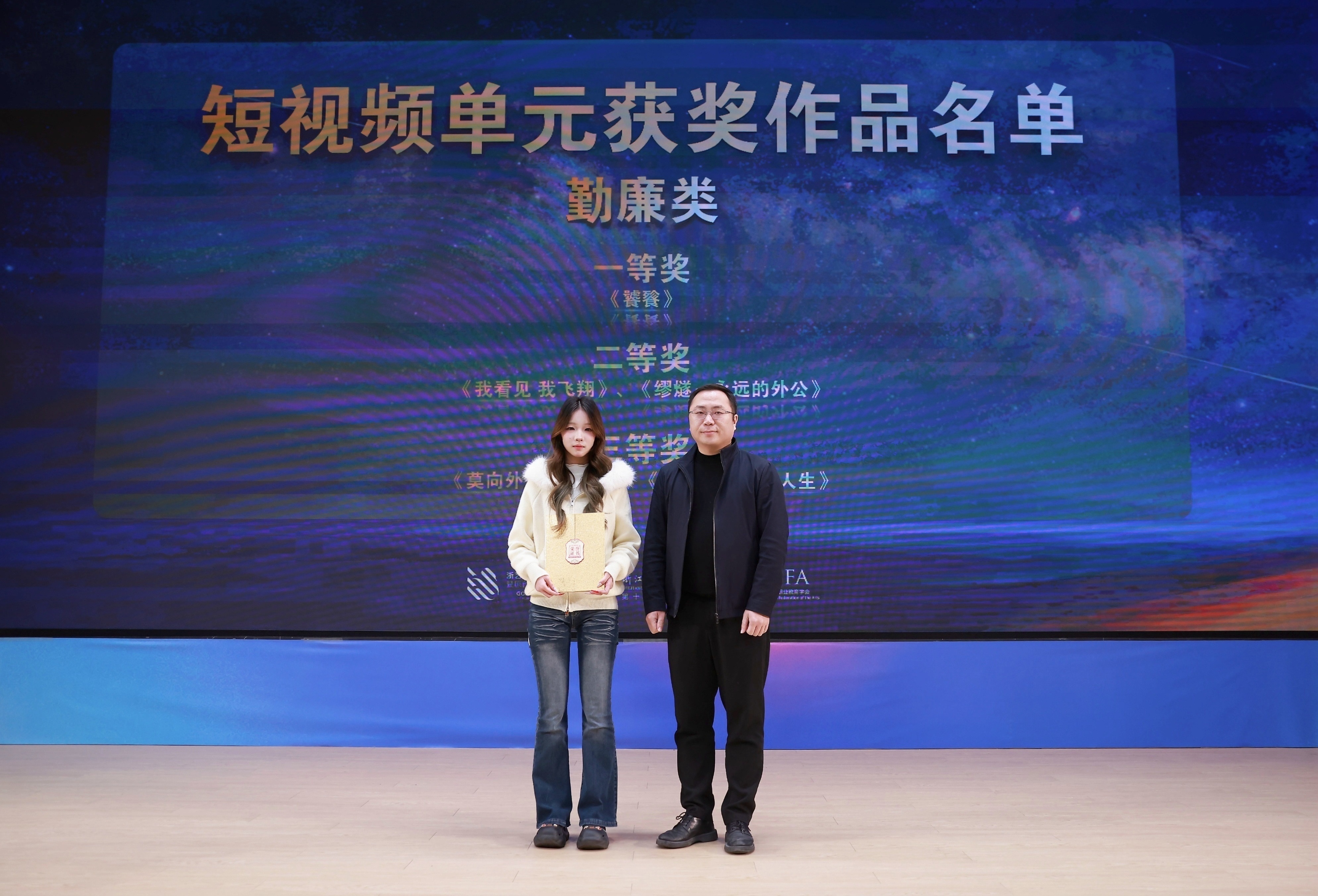 11月21日晚,由浙江省教育厅、浙江省文化广电和旅游厅、浙江省电影局、浙江省电影家协会指导,中国艺术职业教育学会主办,浙江艺术职业学院、金鹄青年电影周暨原创影像大赛组委会、微短剧行业产教融合共同体联合承办的第八届金鹄青年电影周暨原创影像大赛,在浙江艺术职业学院落幕。