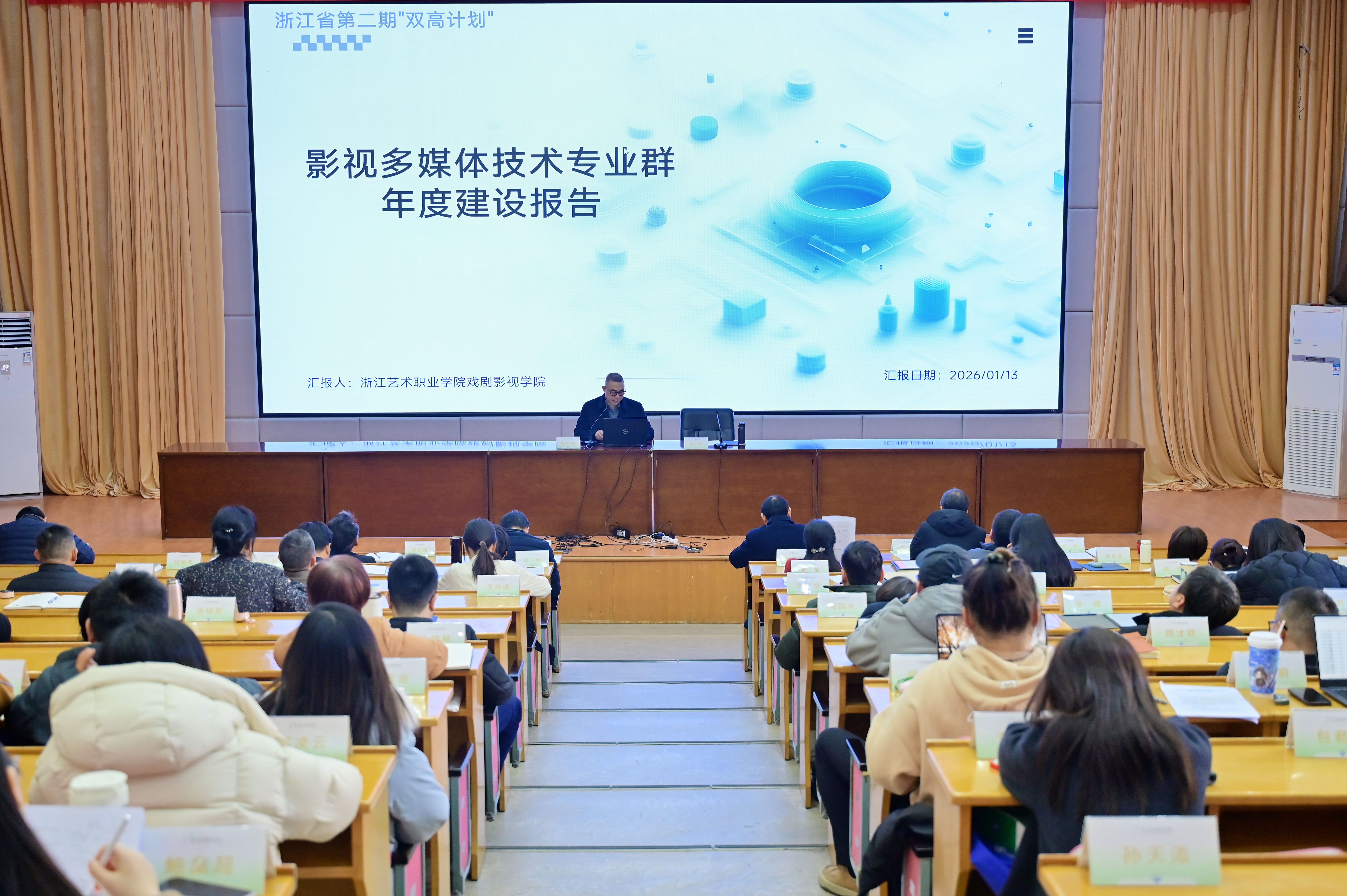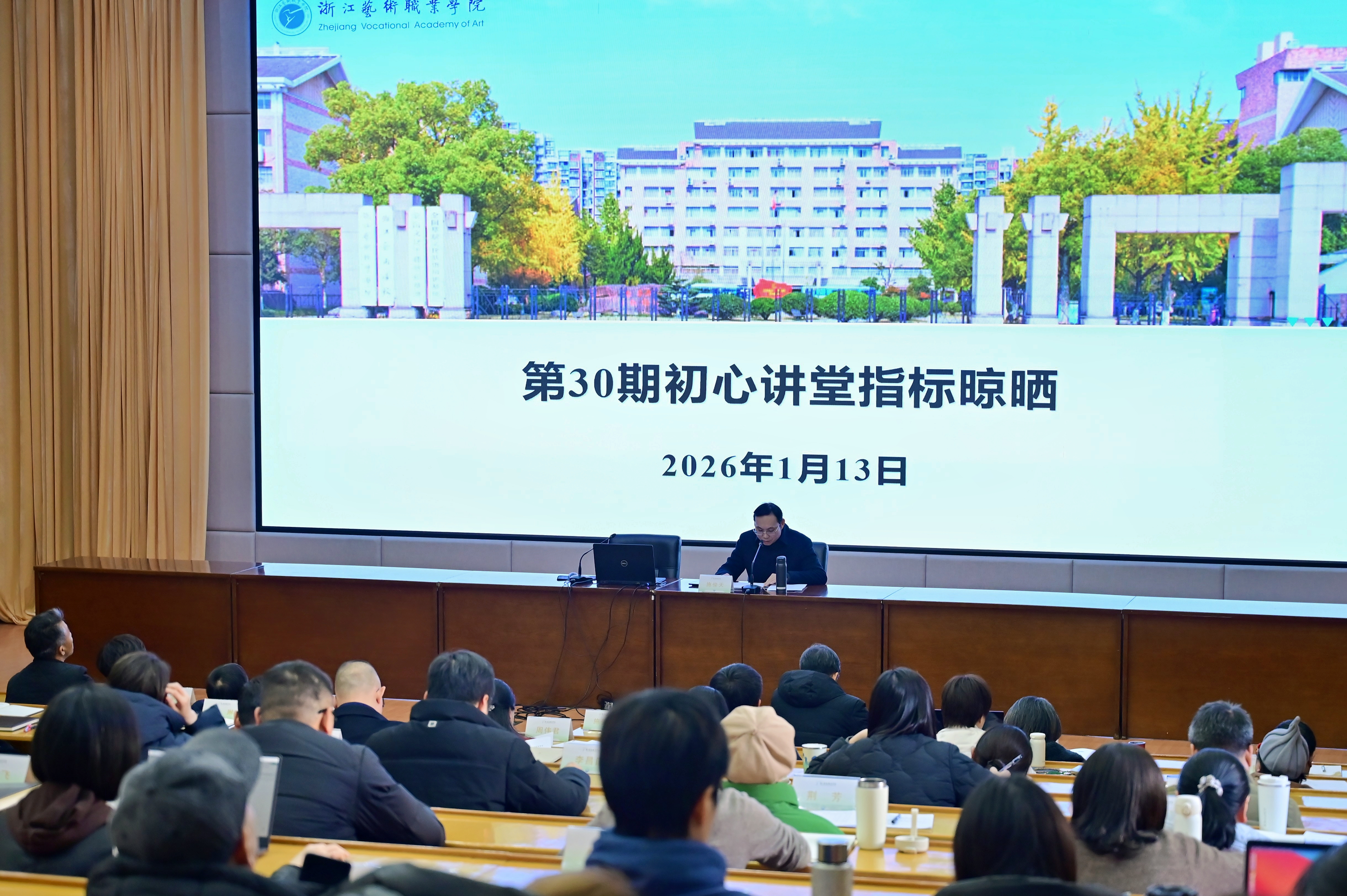 113日下午,浙江艺术职业学院2025年第六期(总第30期)“初心讲堂”在图书信息中心报告厅举行。校党委班子成员,全体中层干部、五六级职员、主管岗位管理人员、基层党支部书记、教研室主任、专职组织员参加会议。会议以晾晒数据、总结工作、部署任务为主线,全面回顾2025年发展成就,系统谋划2026年重点工作。校长、党委副书记施俊天主持会议并作总结讲话。
