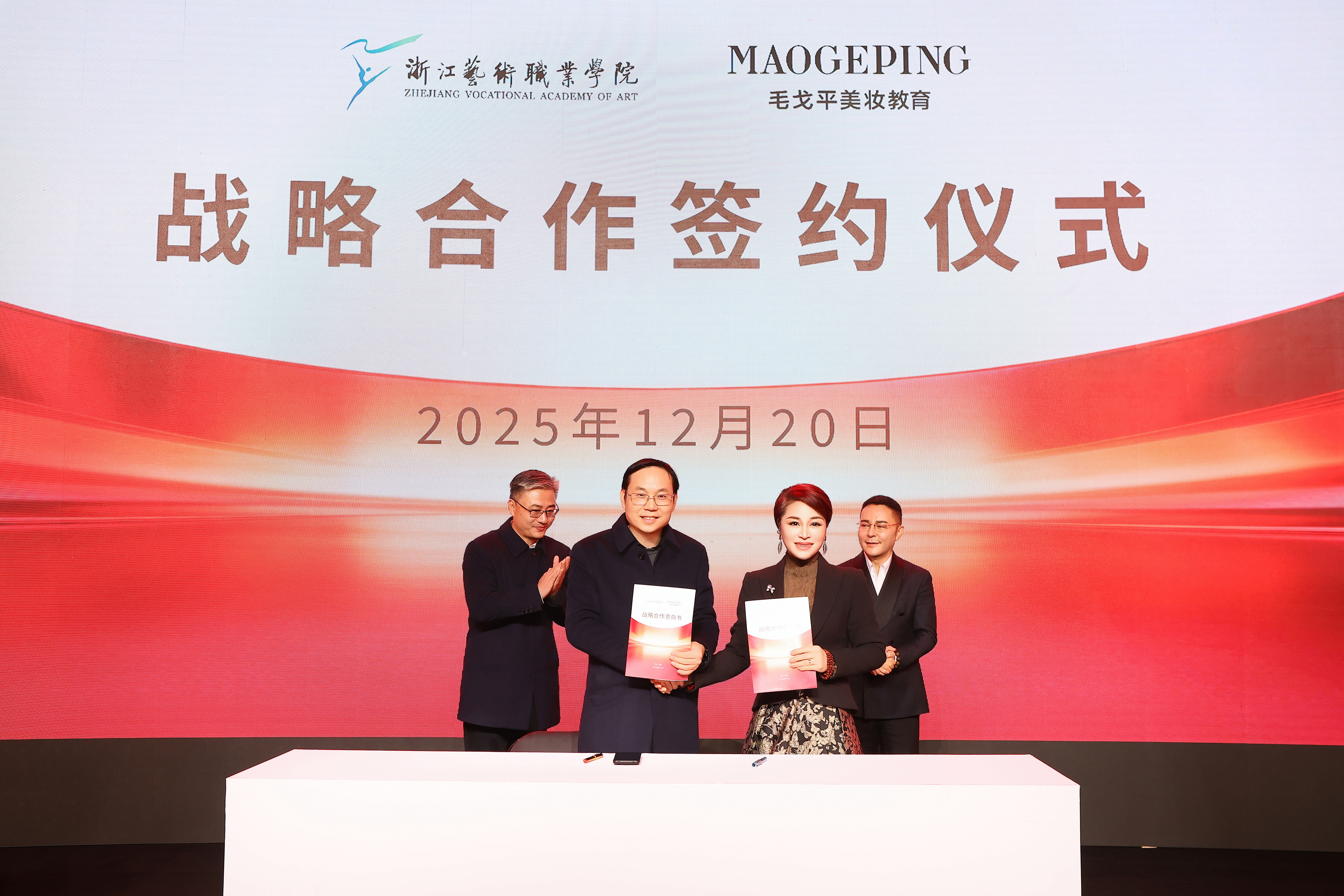 这一年,我们勇担文化使命,第二批“1111”人才计划圆满收官,宁海平调非遗研修班薪火相传,为中华文脉赓续培育中坚力量。我们心系边疆,“我爱浙疆·基层文化员”项目入选浙江文旅援疆“双珠”计划标志性成果,27名学员奔赴岗位播撒文化火种。我们拥抱世界,首招25名国际留学生,中外合作办学项目成功落地,接待9国团组来访,赴法、泰演绎“舞韵东方”,让中华美育之花绽放在国际舞台。我们用心服务社会,浙艺夜校创新启幕,入选省级优秀案例,5个案例入选非遗与职业教育融合典型,校企协同育人结出累累硕果,四大行业产教融合共同体获省级入库,毛戈平产业学院顺利揭牌,与杭州演艺集团、百越文创等深度联动,产教融合之路越走越宽广,校企合作“骏马图”愈绘愈精彩。