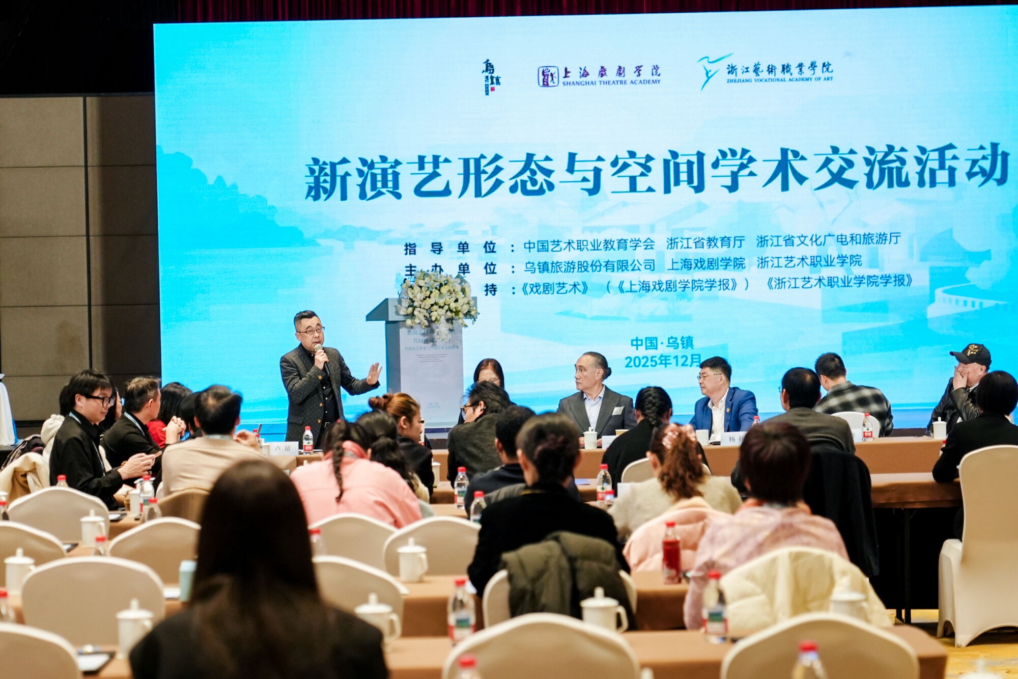 <p style="text-indent: 2em;"><span style="font-family: 宋体, SimSun; text-indent: 28px;">12月6日,新演艺行业产教融合共同体成立大会暨新演艺形态与空间学术交流活动在乌镇举行。本次活动由中国艺术职业教育学会、浙江省教育厅、浙江省文化广电和旅游厅指导支持,乌镇旅游股份有限公司、上海戏剧学院、浙江艺术职业学院联合主办,来自全国演艺行业院校、企业、科研机构及行业协会的百余位嘉宾齐聚水乡乌镇,共商产教融合大计,共话行业创新发展。</span></p>