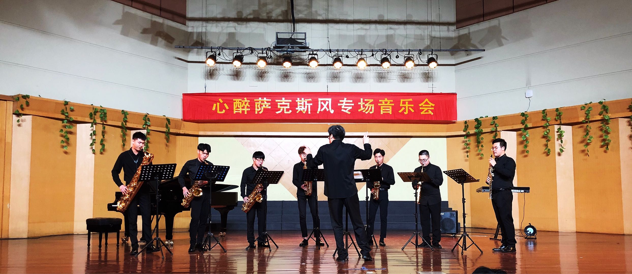 当晚的演出是由音乐系萨克斯风专业张新伟、周远星二位老师以及全体萨克斯风专业的同学们共同完成。他们其中有即将步入社会的毕业班同学,也有刚开始体验大学生活的新同学。可以说本场音乐会既是给毕业班同学大学生活画上一个完美的句号,也是给新同学第一个走上舞台锻炼自己的机会。