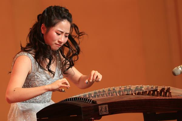 晚会由许诗悦的专业指导教师、音乐系民族器乐教研室青年教师段廉担任主持,她向观众细致讲解了每部作品的创作背景、文化内涵、指导过程。在长达一个半小时的音乐会中,许诗悦为在场观众带来由周煜国、周望、王丹红等名家创作的7首不同风格、不同形式的古筝名曲,当中既有古筝独奏《西部主题随想曲》、古筝协奏《云裳诉》《如是》,也有群筝《忆长安》、钢丝筝独奏《陈杏元和番》、古筝独奏《关山随想》,日本作曲家三木稔创作的七声弦制筝独奏《风·雨》更是为音乐会增添了几许异国情愫。音乐会特邀上海音乐学院艺术指导熊壮壮、浙江歌舞剧院民族乐团打击乐声部长王富生担任《云裳诉》《如是》《西部主题随想曲》三部作品的协奏,多重乐器的交相辉映令筝曲焕如新生。作为一名即将毕业的在校生,许诗悦全情贯注的表演和出色的舞台感染力赢得了现场观众的热烈掌声。