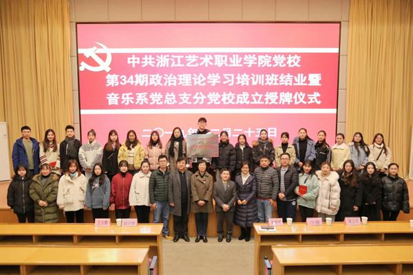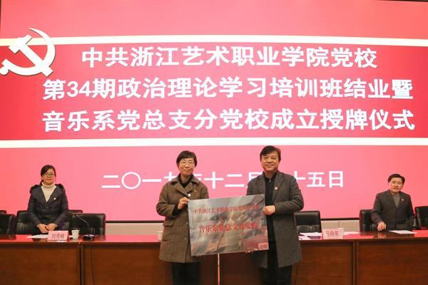 12月25日晚,党校第34期培训班结业暨音乐系党总支党校成立授牌仪式在学校图信报告厅举行。校党委书记朱海闵为音乐系党总支分党校授牌,并祝贺音乐系党总支分党校成立。校党委委员、党委宣传部部长马向东主持仪式并宣读批复。音乐系党政班子成员、组织员、学生支部书记、34期党校学员等参加。