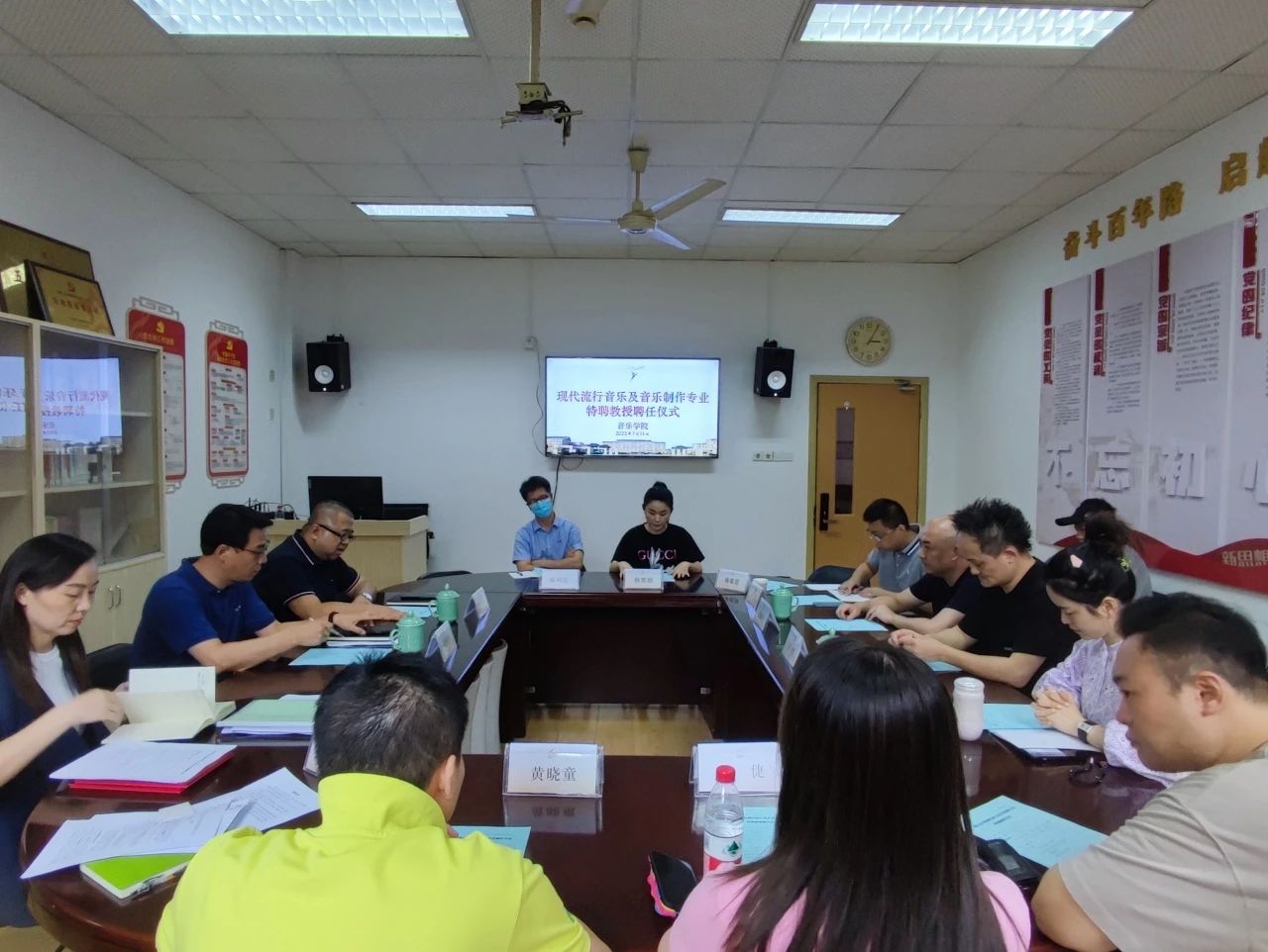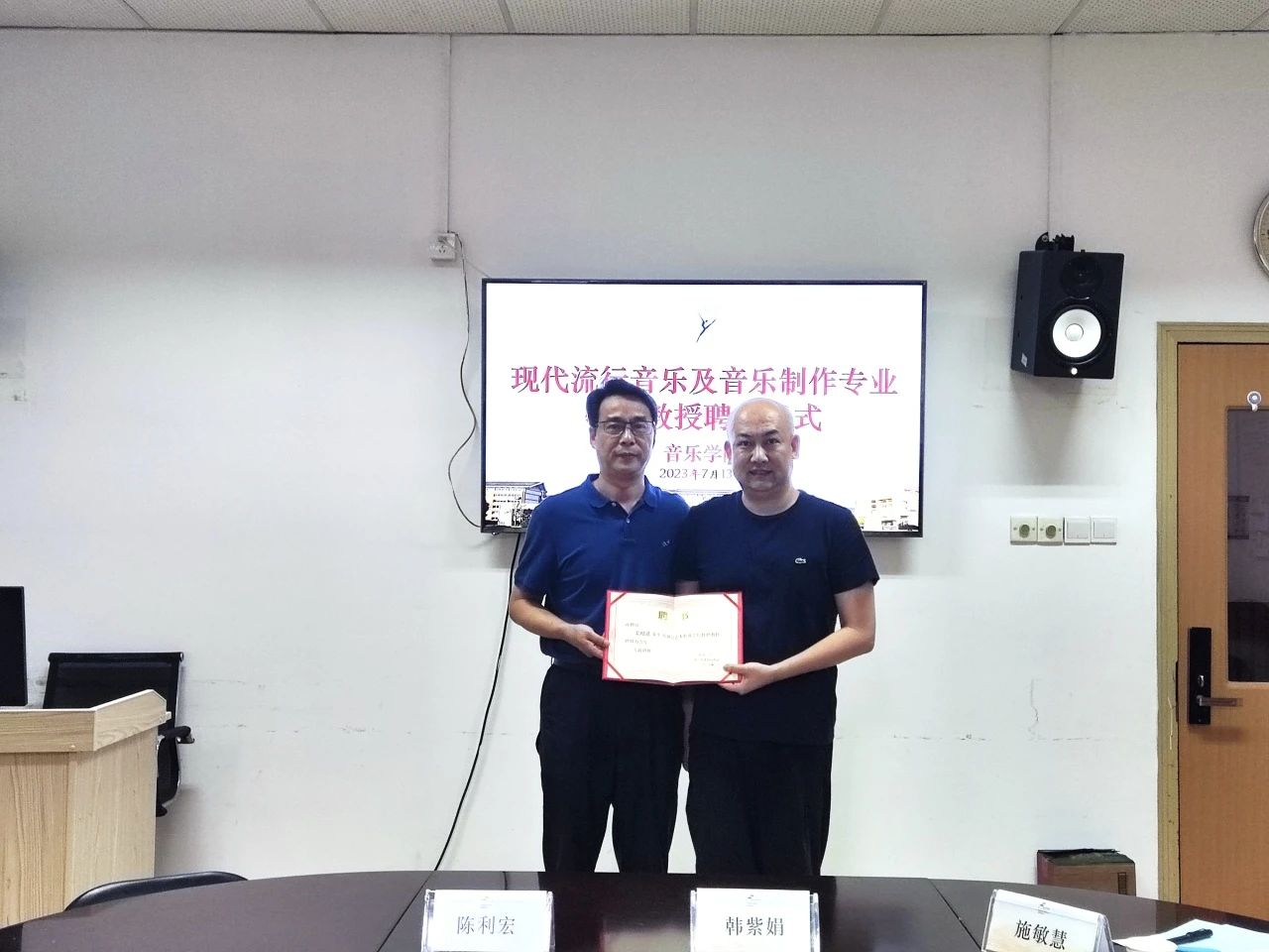 7月13日下午,音乐学院现代流行音乐及音乐制作专业特聘教授聘任仪式在3101会议室举行,聘任浙江音乐学院流行音乐系副主任王滔担任我院现代流行音乐专业特聘教授,聘任浙江音乐学院音乐工程系副教授姜超迁担任我院音乐制作专业特聘教授。音乐学院领导班子、办公室主任、流行及音乐制作相关教师代表出席聘任仪式,潘骅副院长主持仪式。