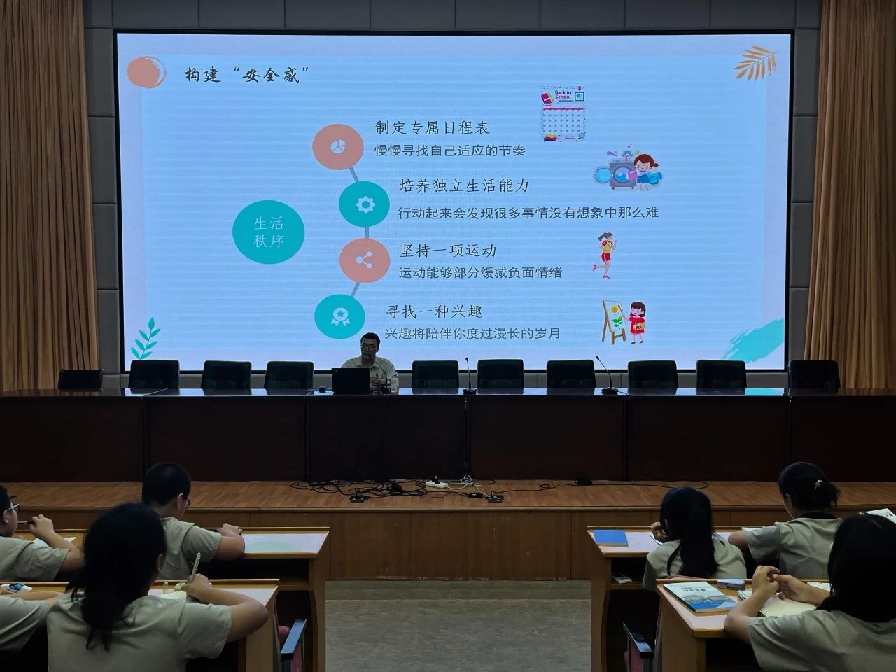 面对新的环境和挑战,新生可能会产生各种心理压力和困惑。9月8日,音乐学院特邀学校心理健康中心的范雨轩老师开展心理健康知识教育,范老师用生动案例引导学生认识自我、发挥潜能,提高心理素质,树立正确的心理健康观念,营造积极向上的校园氛围。