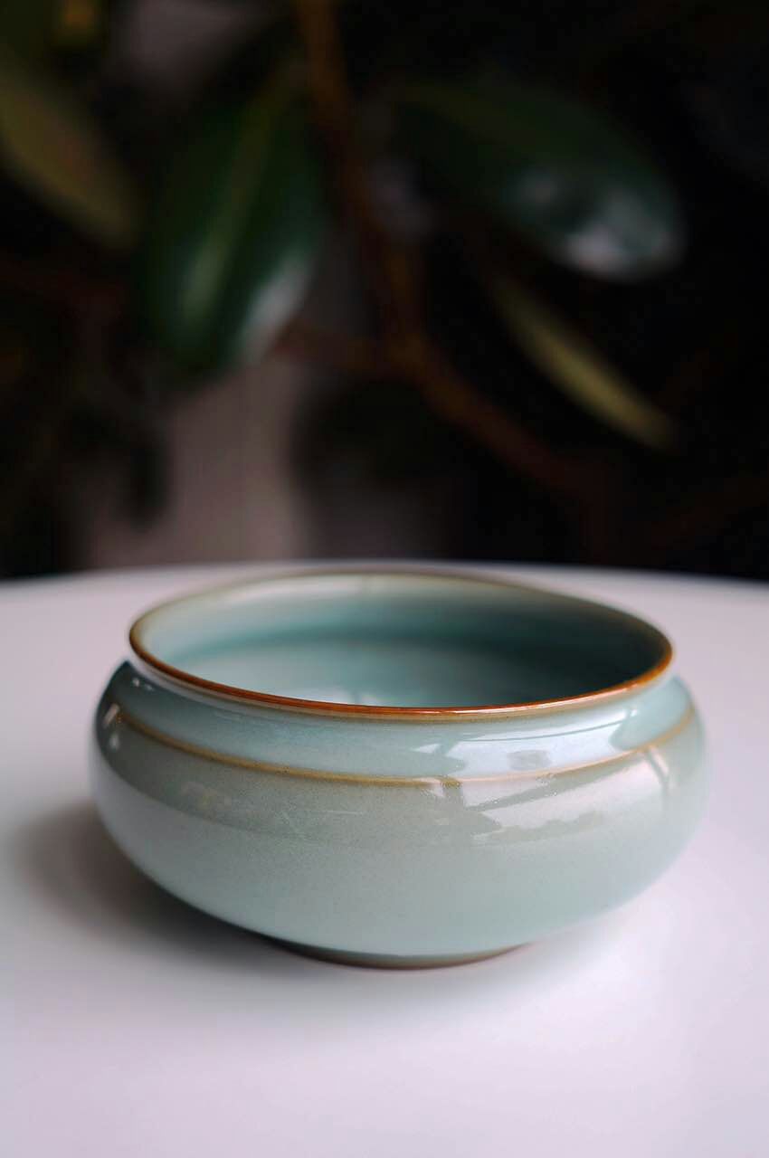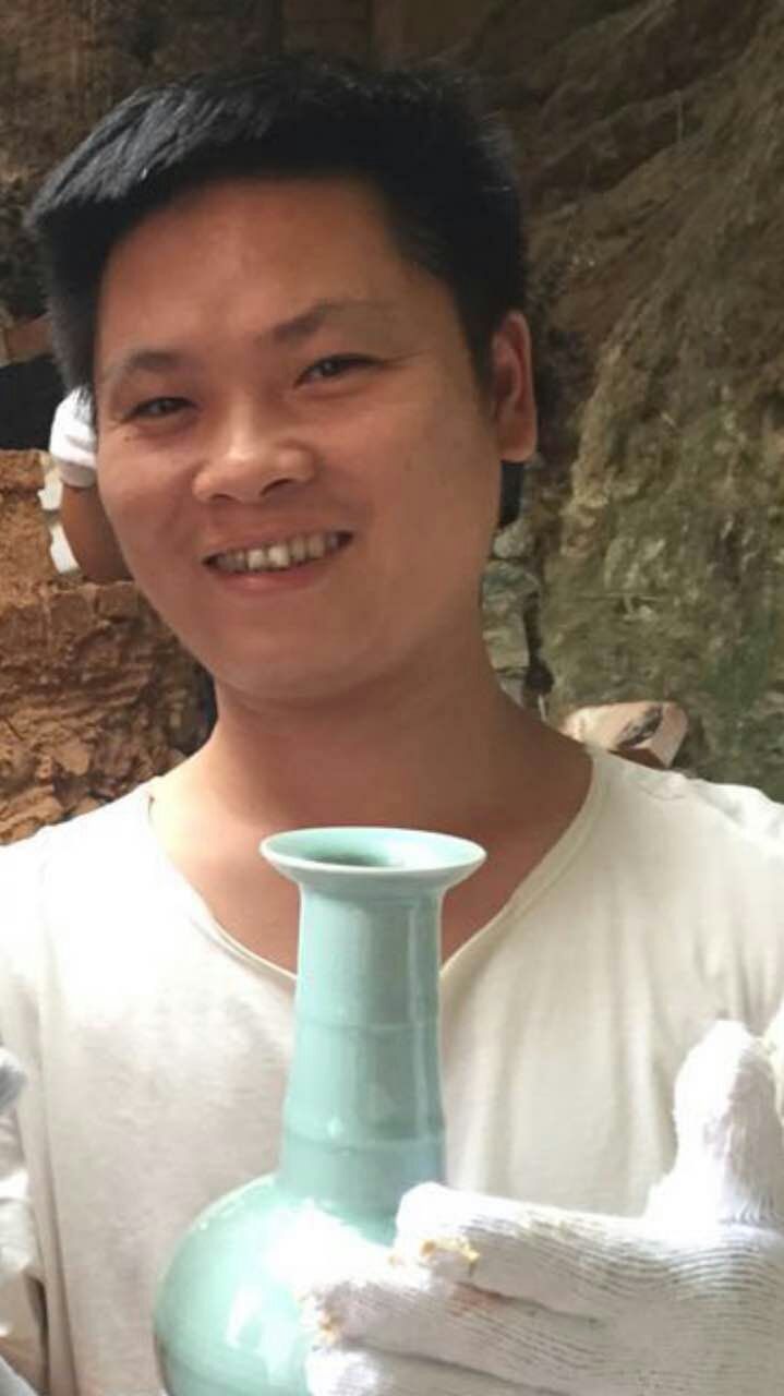 说起叶传应和青瓷的渊源,像个传奇——2003年,23岁的叶传应因为一个偶然的机会,到青瓷艺人李志明老师家拜访,奔着喝茶去的叶传应,却在老师家被青瓷“俘虏”。以“温润之如玉釉色”著称的青瓷一下攫住了叶传应的视线,他笑着用“一见钟情”形容自己当时的感受。于是,这个从未接触过青瓷的年轻人,这个谈起龙泉“只知宝剑不知青瓷”的门外汉,就从零开始,一边从青瓷历史文化了解起,一边跟随李师父从事青瓷制作工艺、釉色配方的学习和研究。