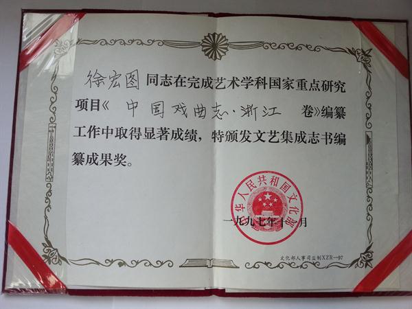 编纂戏曲志,是文化部于1983年下达给各省的紧迫任务,是跨国家“六五”、“七五”计划的“十大文艺集成志书”工程之一。戏曲历来无志,这次是破天荒,对我来说是难逢的好机会,成为我学术生涯的转折点。我有了下剧团体验生活的经历,到瓯剧及高腔院团体验生活。虽然时间不长,却让我过了一把彩排、开台、过台基、讨彩、扫台等演艺生涯之瘾,终身受益与难忘。编纂期间参加了全省戏曲大普查。这是新中国第一次,搜集散落各地的戏曲资料,包括手抄本、曲谱、剧照、面具、脸谱、服装、道具等。调查对象达2000余人,收集原始资料5000余万字,图片上万张,还有大量的音响资料,仿佛进入金山银山,珠光翠影,应接不睱,为日后的戏曲研究积累了大量史料。