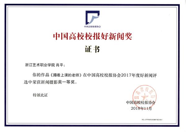 近日,从全国高校校报协会年会传来喜讯,浙江艺术职业学院影视技术系组织员肖平老师的新闻摄影作品《蹲着上课的老师》荣获中国高校校报协会2017年度好新闻评选新闻摄影类一等奖。这是我校校报在全国校报好新闻评选中获得的历史最好成绩。