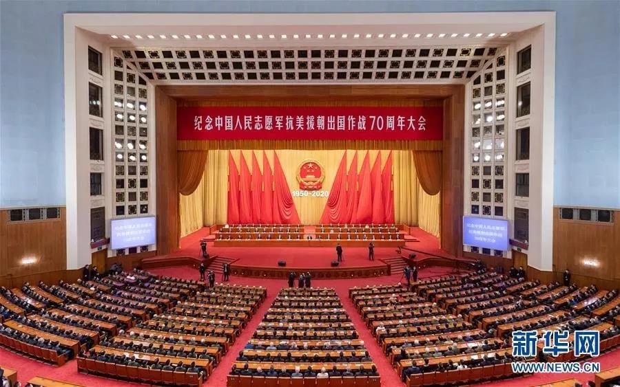 1023日,纪念中国人民志愿军抗美援朝出国作战70周年大会在北京举行。中共中央总书记、国家主席、中央军委主席习近平在讲话中强调,抗美援朝战争伟大胜利,将永远铭刻在中华民族的史册上!永远铭刻在人类和平、发展、进步的史册上!伟大抗美援朝精神跨越时空、历久弥新,必须永续传承、世代发扬。