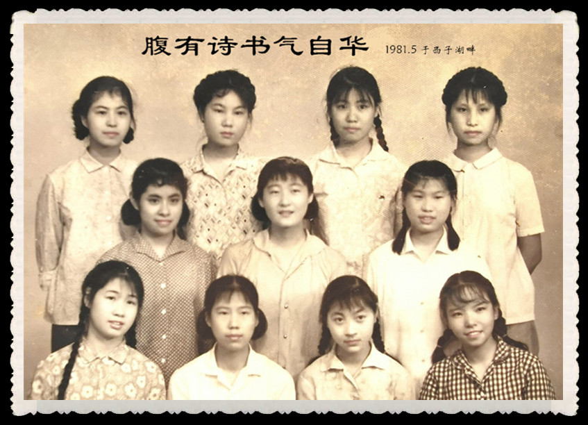那是1981年5月的一天,大家忙着复习迎接毕业考试,在我使劲的劝说下,大家才前往杭州解放路照相馆。因为有的小姐妹不想去,原因是没时间好好地打扮一下;还有小姐妹认为以后有的是时间,建议不必着急,可以等考完试再去。但大多数同学都支持我的建议,不管如何,年轻就是漂亮,拍了再说。就这样,我和10个小姐妹一生中“花开最盛”的瞬间,就定格在这家西子湖畔的照相馆的堂前。