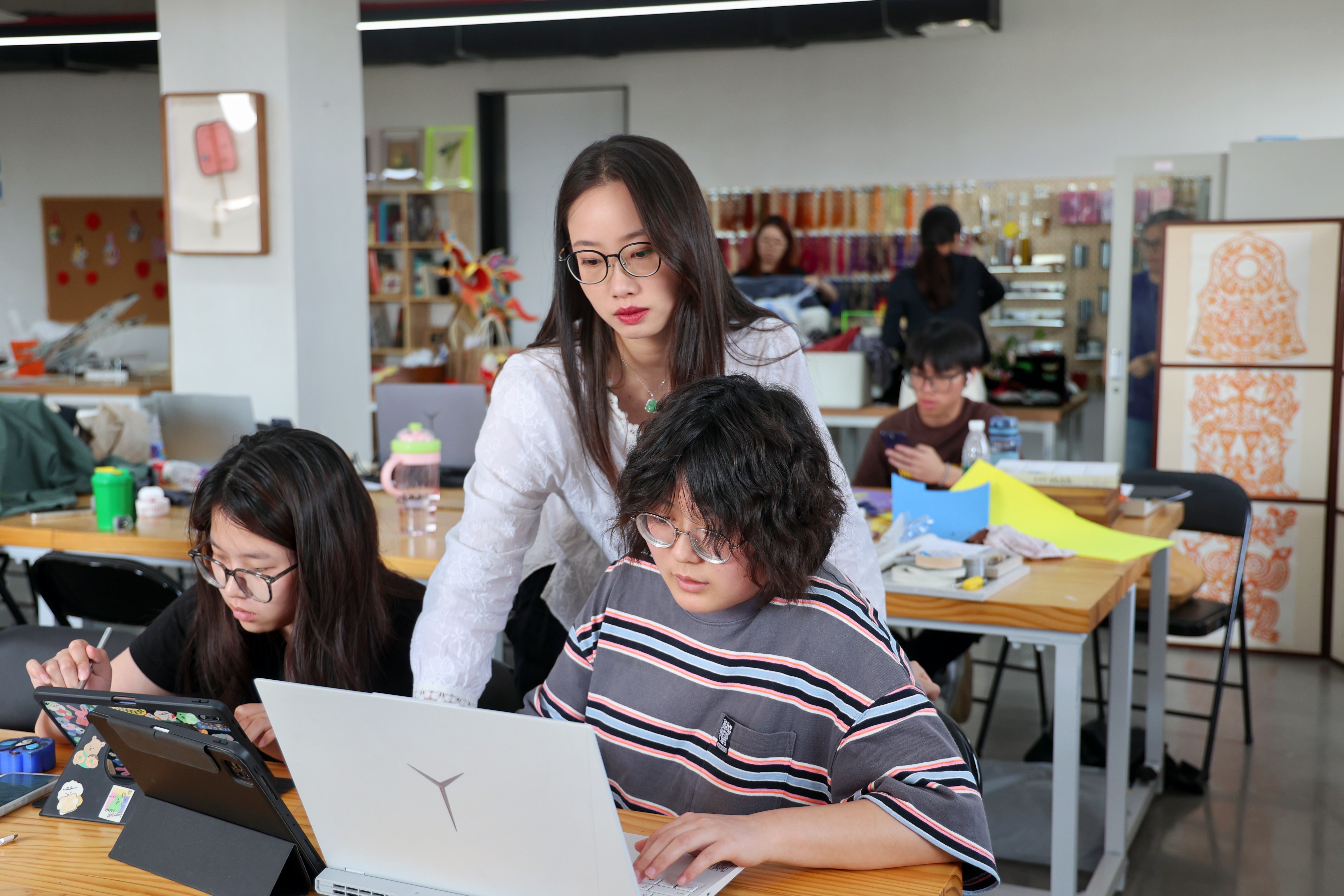 一把剪刀一张纸,一缕丝线一根针,在这些朴素又日常的工具材料中,孙艺萌打磨着自己的专业技能,带领同学们在传统与现代的交融中学习手工技艺,体验和传承中国非物质文化遗产的精髓。